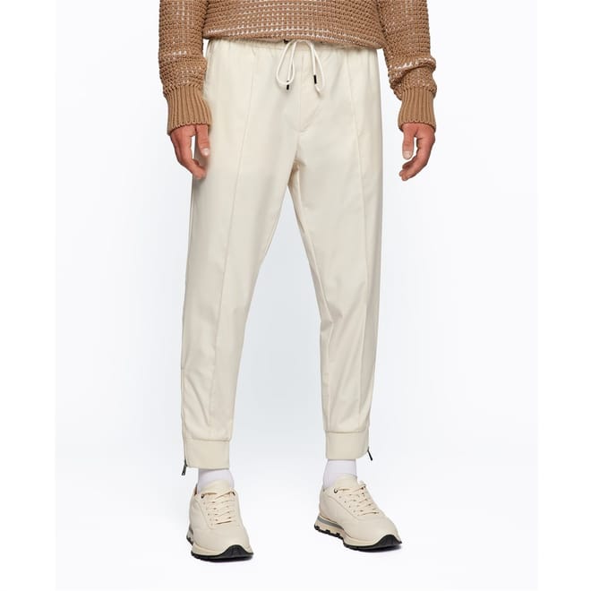 Elevate your casual wardrobe with these jogger pants from BOSS. Featuring a solid pattern, these pants are designed with a comfortable drawstring and zipper closure. The iconic logo embellishment adds a stylish touch, making them a versatile choice for any laid-back occasion. -