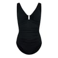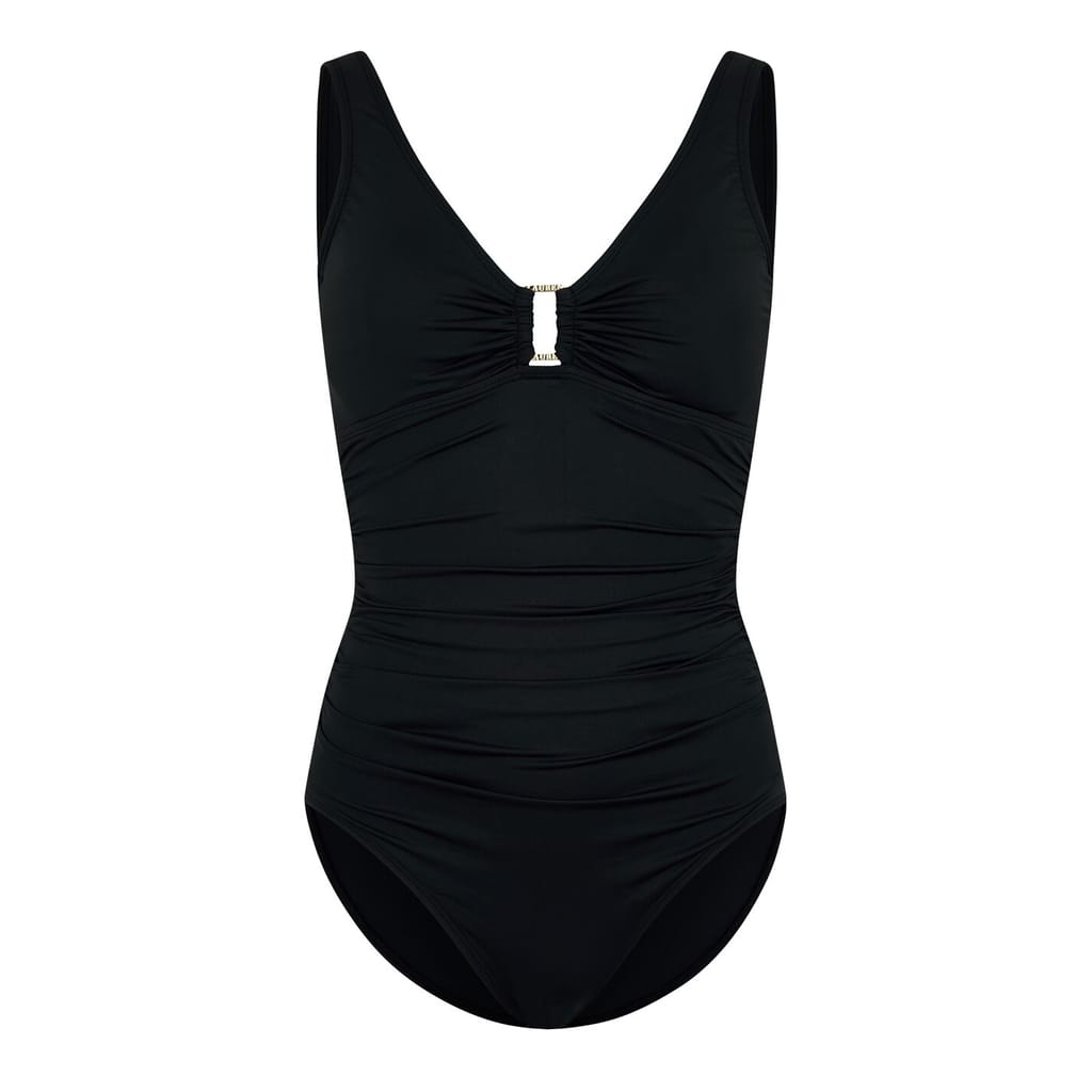 Designed as part of Lauren By Ralph Lauren's Beach Club Solids collection, this Shirred Ring-Front One-Piece is destined to add a touch of glamour to your poolside ensemble. A refined yet luxurious design, this swimming costume seamlessly transitions between extravagant yacht parties to relaxing days on the beach, cementing its position on every vacation packing list.