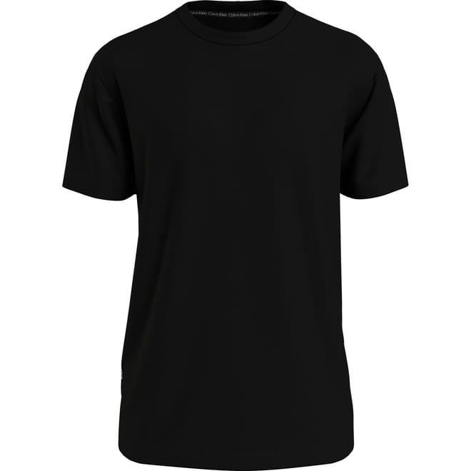 Embrace effortless style with this Calvin Klein regular fit t-shirt. Perfect for casual collections, this solid top features short sleeves and a classic crew neck. The neck tape embellishment adds a subtle touch of detail, making it a versatile addition to your wardrobe. -