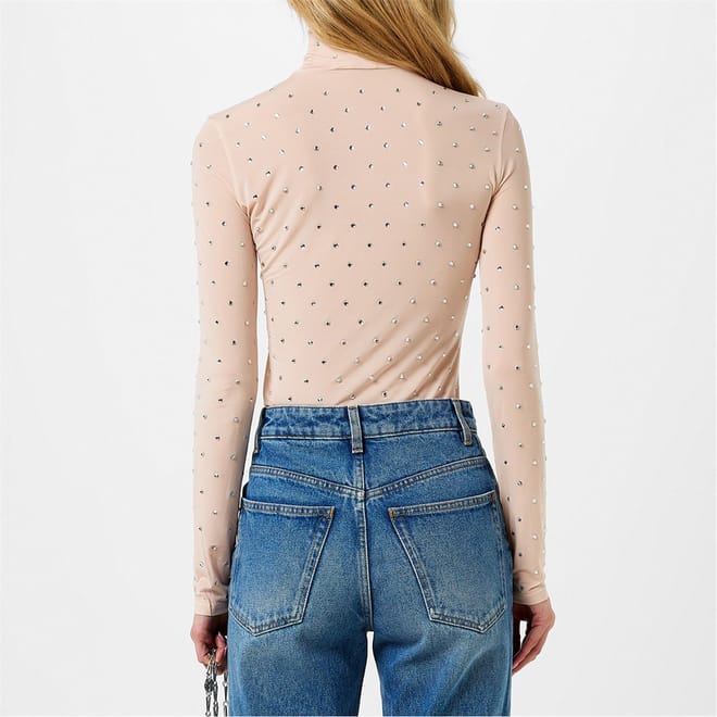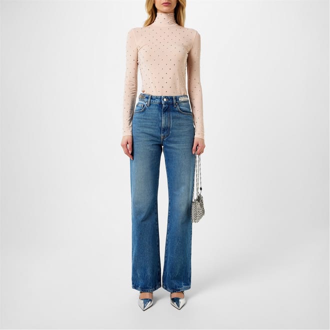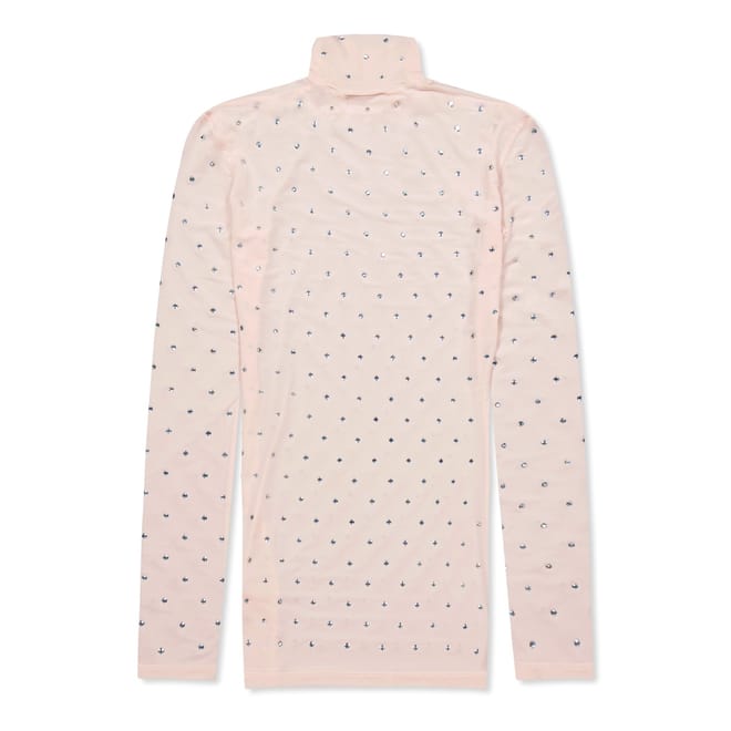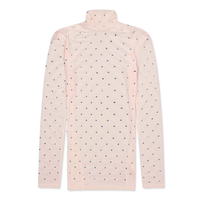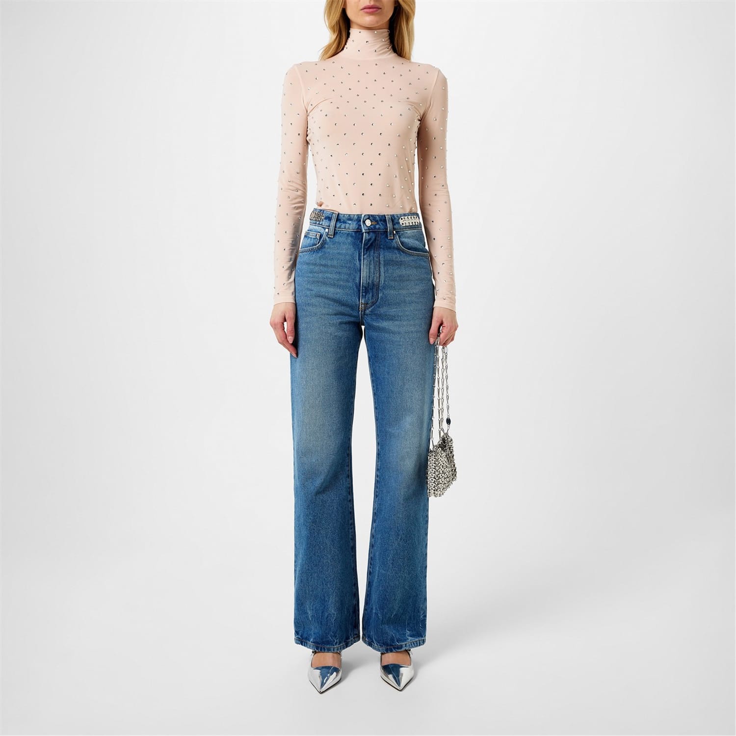 This Rabanne turtleneck t-shirt offers a sophisticated touch to your wardrobe. Designed with long sleeves, it features a slim fit that accentuates the silhouette. The highlight is its crystal embellishments, adding a touch of elegance to this top. Ideal for those seeking a blend of style and sophistication in their fashion choices. -