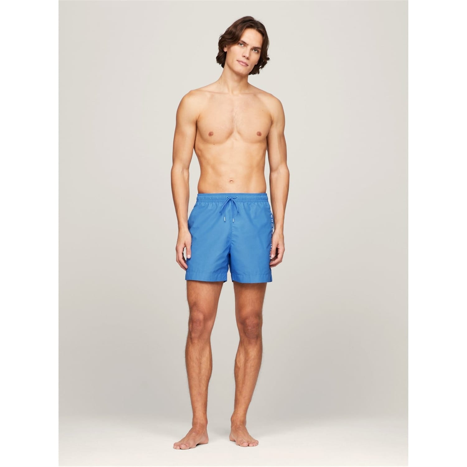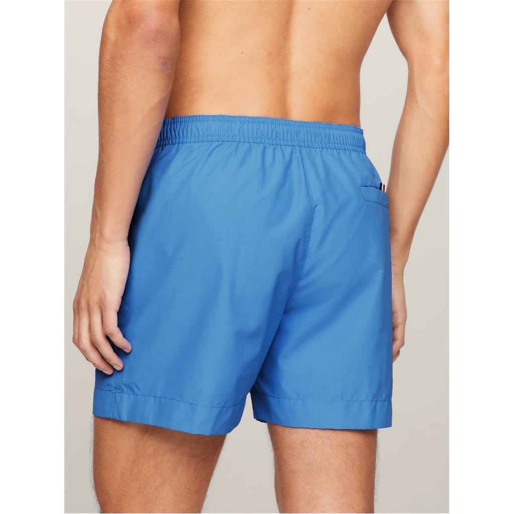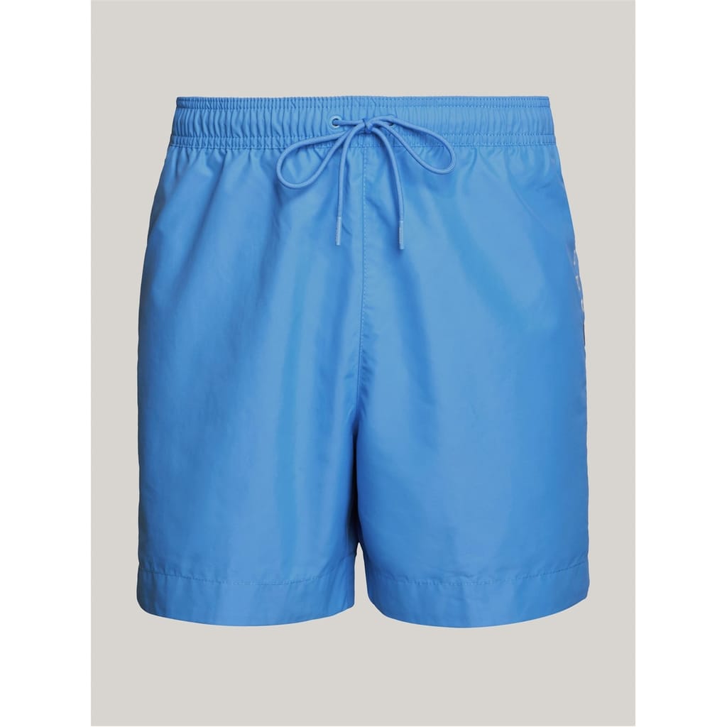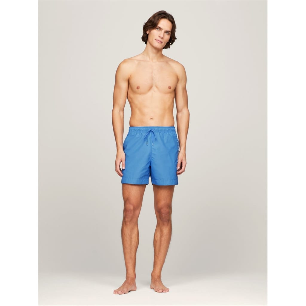Tommy Hilfiger swimwear features a stylish swim bottom with a drawstring closure for a secure fit. This piece is adorned with the iconic logo and includes a practical pocket, combining functionality with brand recognition. Ideal for those seeking a blend of comfort and style in their swimwear collection. -