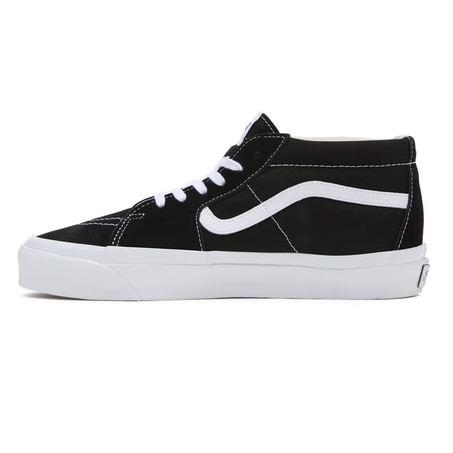Add a classic look to your sneaker collection with Vans Vault and the Sk8-Mid Reissue Sneakers featuring the signature white leather side stripe for an authentic look. This mid-rise design is an iconic reimagined design of the high sneakers so you can exude a timeless statement every day.