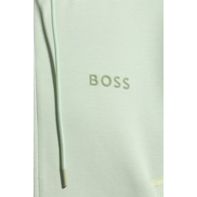 Elevate your casual wardrobe with this Boss sweatshirt. Featuring a hooded neckline and long sleeves, this regular-fit hoodie offers both style and comfort. The solid pattern and ribbed cuffs add a classic touch, while the logo embellishment provides a subtle brand statement. Complete with a functional zipper and drawstring, this sweatshirt is perfect for layering. -