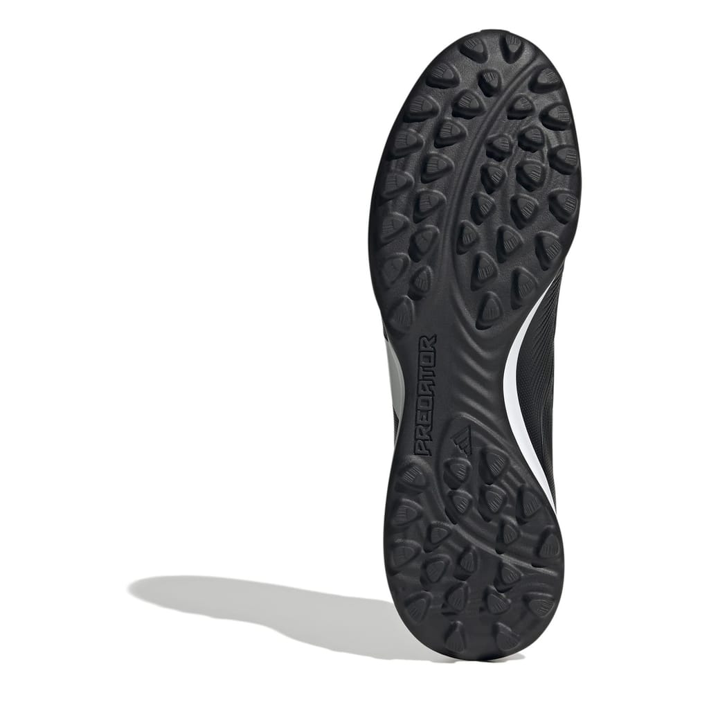 Get ready to dominate the pitch with the adidas Predator 24 League Low Turf Boots. Made with at least 20% recycled content, it showcases adidas' commitment to sustainability. Crafted with a synthetic upper enhanced with Hybridfeel technology, these boots are optimized for accurate shooting, giving you the precision and control needed to take your game to the next level. The 3D texture, along with the grippy Strikescale fins on the medial side, ensures maximum ball control, allowing you to unleash your true potential. Inside, the textile lining offers breathability, ensuring you feel comfortable during the game. With the durable and stable lug rubber outsole, you will experience enhanced traction and stability on the turf. Featuring a lace closure and a mono-tongue low-cut collar, these boots provide a comfortable fit that never holds you back. To complete the design, the boots feature the iconic 3-stripes lateral branding for brand recognition. Composition: Upper: Synthetic. Lining: T -