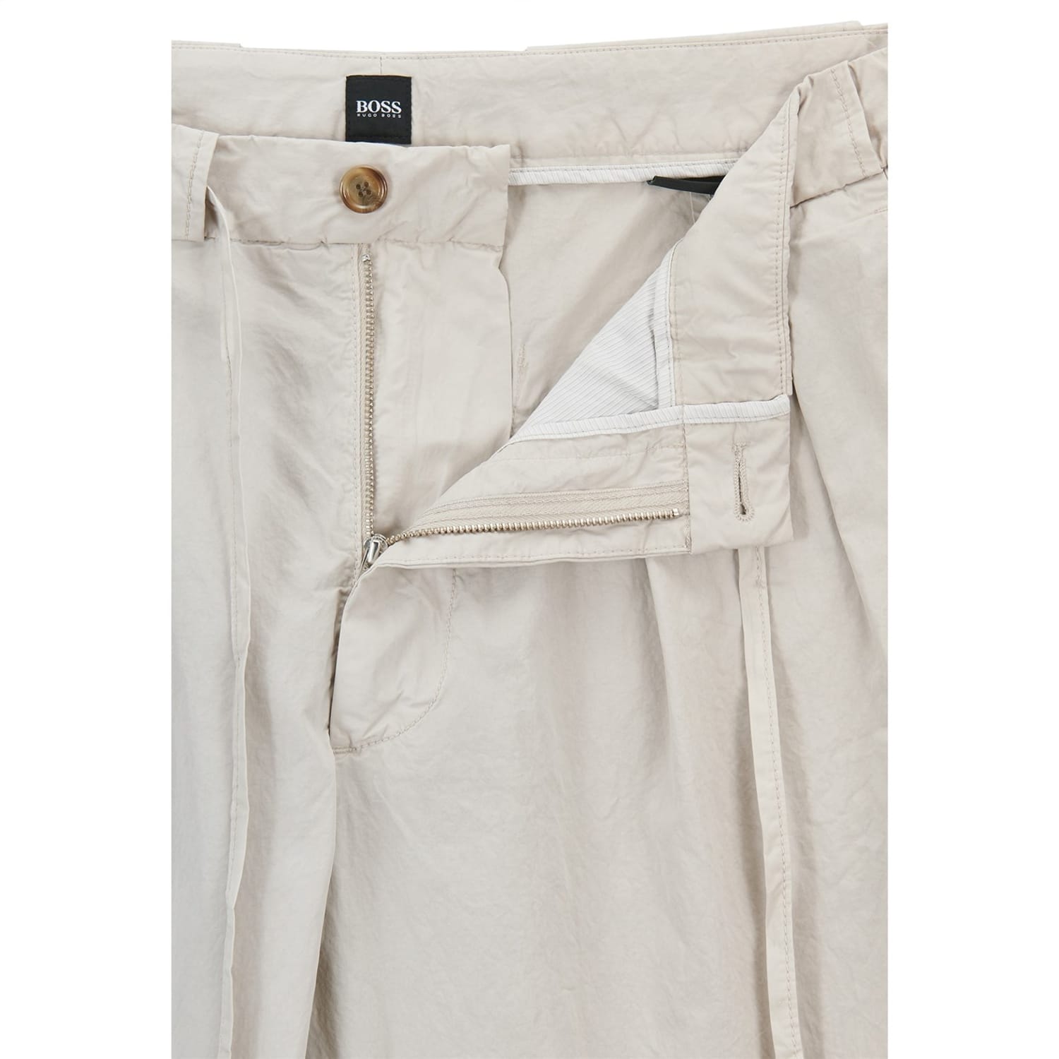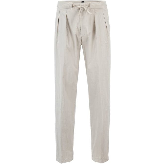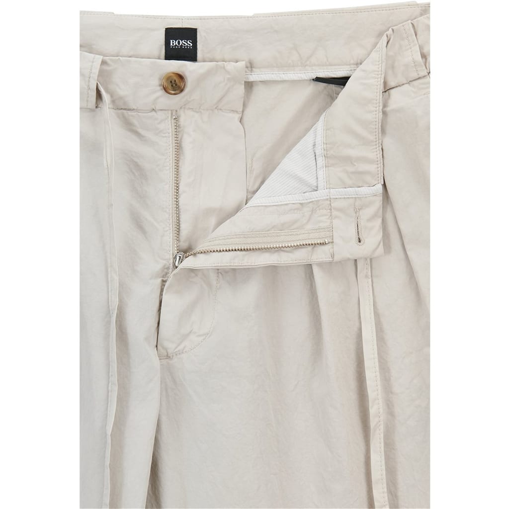 Discover the refined style of Boss trousers. These solid chinos feature a zipper closure and a button for added security. Enhanced with a subtle logo, these pants offer a sophisticated look perfect for any occasion. -