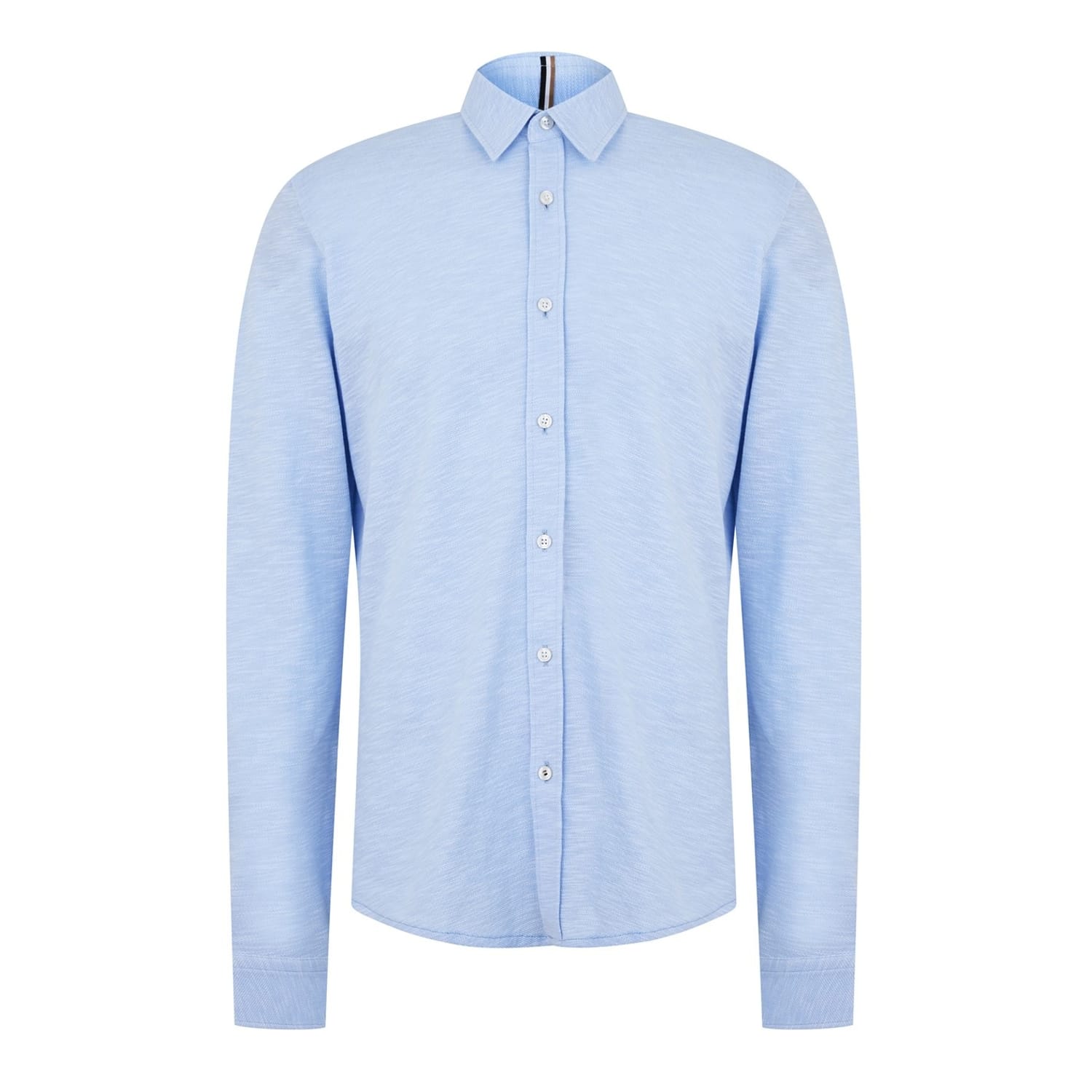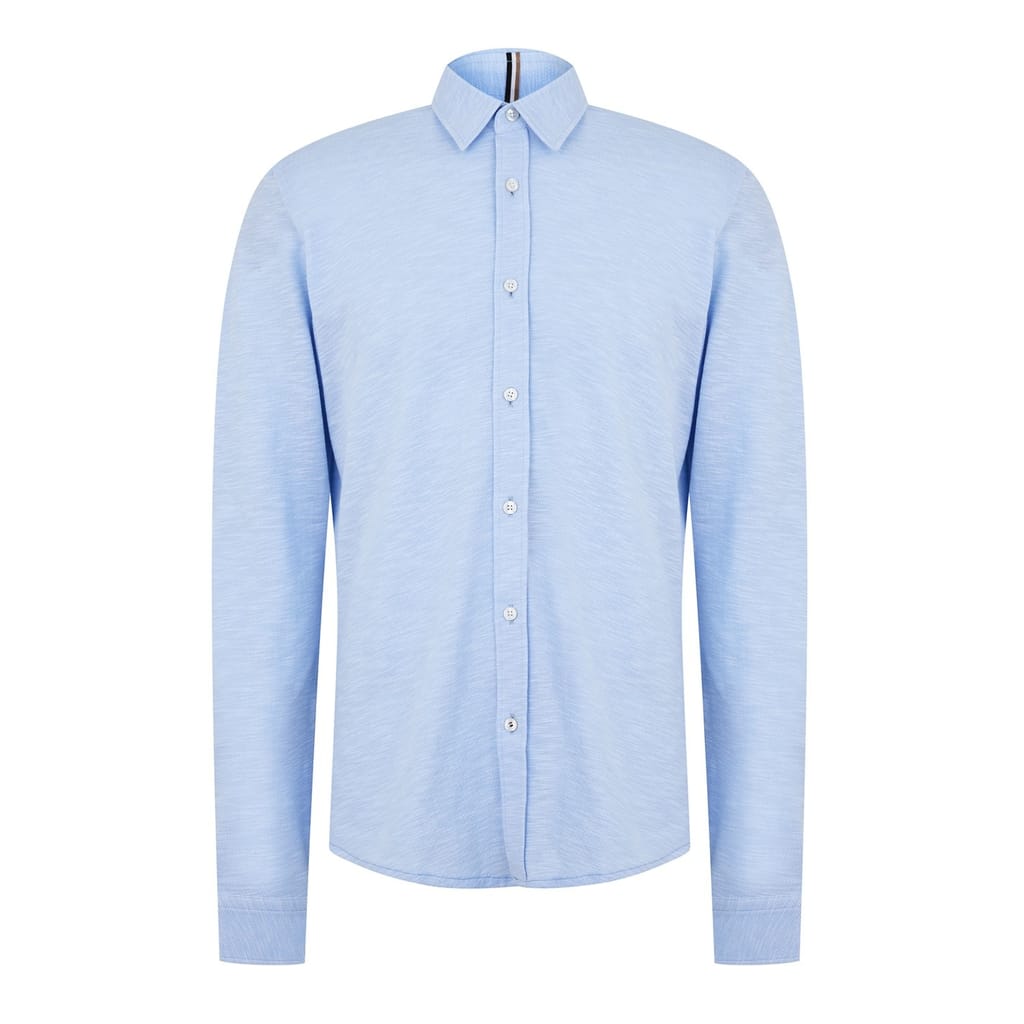 Exude sophistication with this Boss dress shirt. Designed with a shirt collar and long sleeves, this solid top is perfect for both professional and formal occasions. The regular fit ensures comfort, while the button-down closure offers a classic touch. Elevate your wardrobe with this elegant piece. -