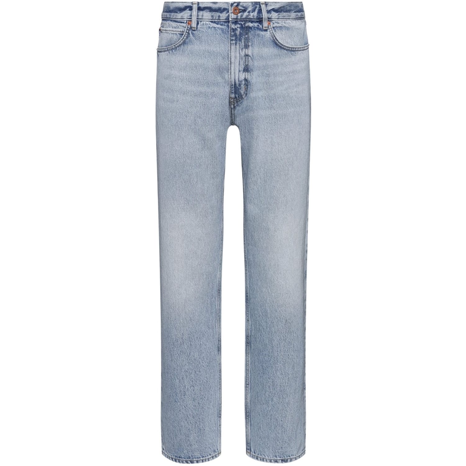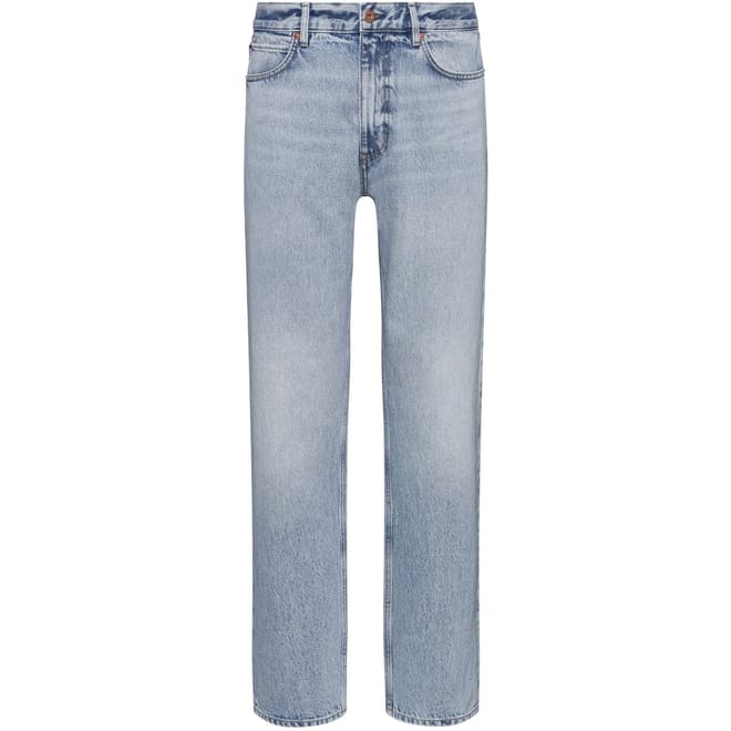 Why not feel like a celebrity in these Jonah Navy Jeans from Hugo? Fashioned from 100% cotton, these jeans exude premium quality. Made for the discerning individual, these jeans boast a medium waist, making them a versatile addition to any wardrobe. The Jonah Navy Jeans feature a regular fit, providing a straight silhouette from the hip to the thigh, ensuring a flattering look. What sets them apart is their looser opening at the ankle compared to a slim fit, offering comfort without compromising on style. The design boasts a branded silver metal top button fastening, five belt loops on the waistband, and a traditional five-pocket design, for that classic look. The Iconic Hugo branding is present in these sophisticated jeans with a discreet debossed plaque on the back and a mini tag on the pocket, for a touch of exclusivity. Perfect for a casual yet refined ensemble, these jeans are designed to elevate your everyday look.