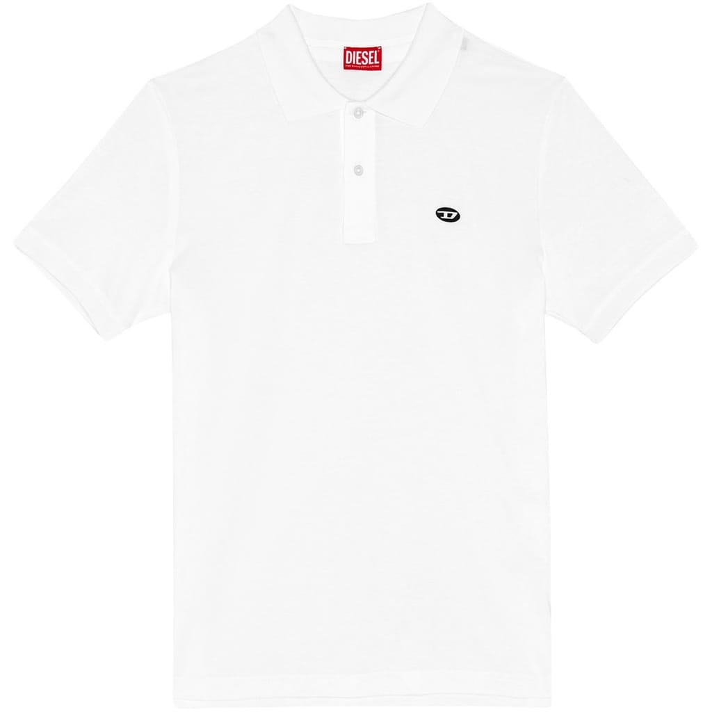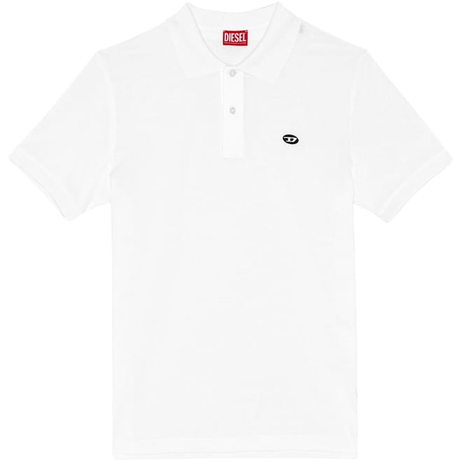 Embrace timeless style with this Diesel polo shirt. Featuring short sleeves and a solid pattern, this regular fit shirt is crafted with a classic polo collar. The button closure adds a refined touch, while the logo embellishment offers a subtle nod to the brand. Perfect for a polished yet casual look. -