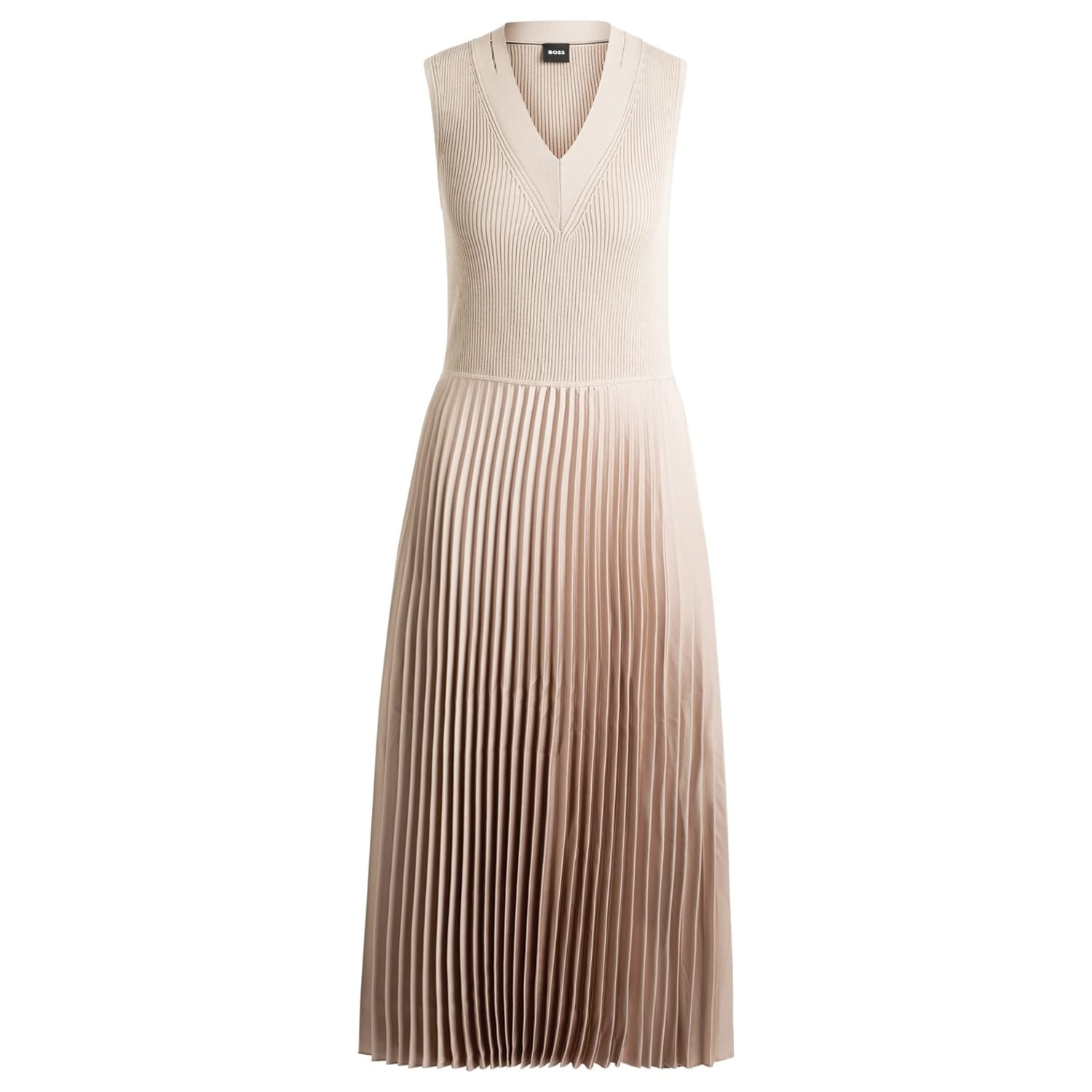 Elevate your wardrobe with this elegant A-line midi dress from Boss. The sleeveless design features a refined V-neckline and boasts a regular fit, making it a versatile addition to any collection. The solid pattern enhances its sophisticated appeal, perfect for various occasions. -