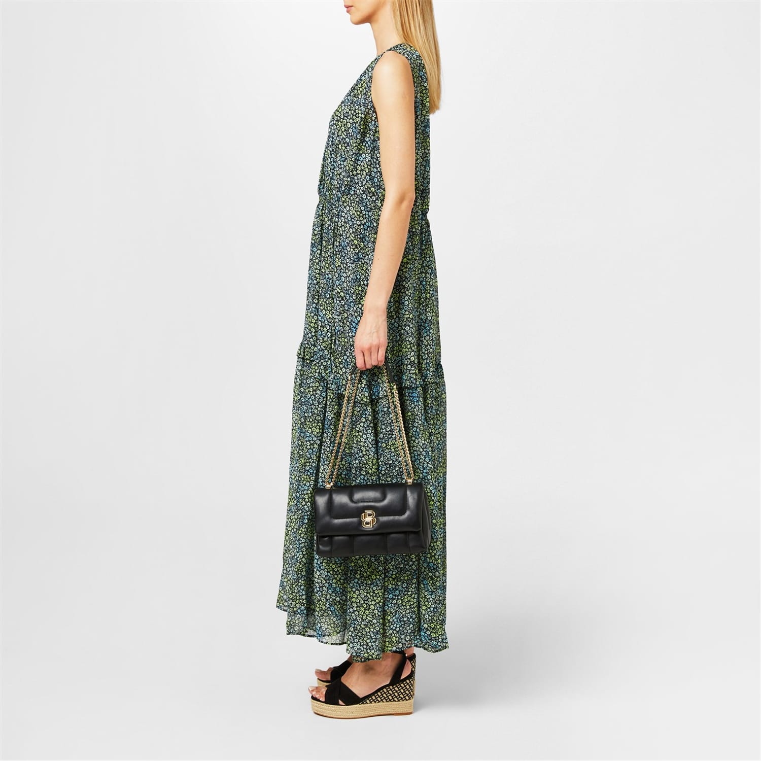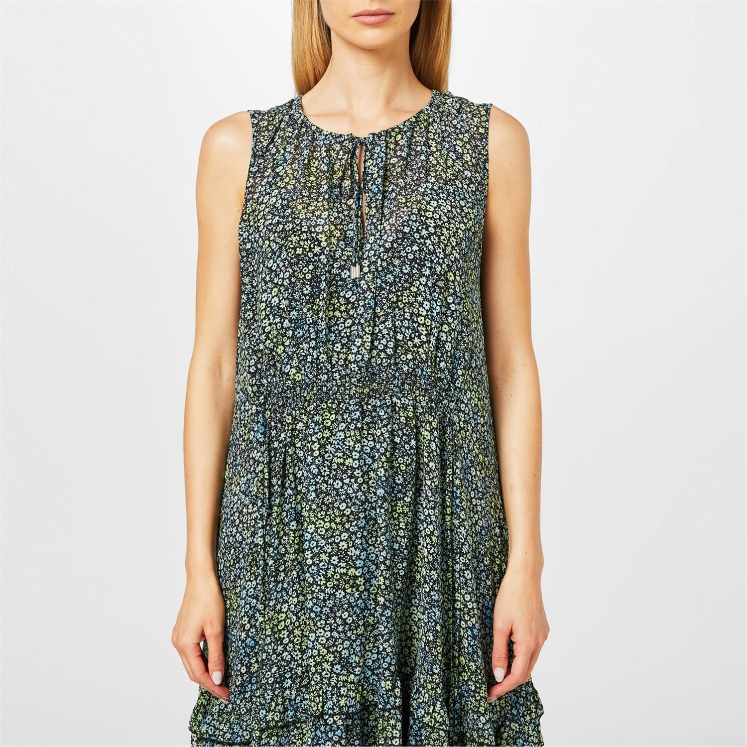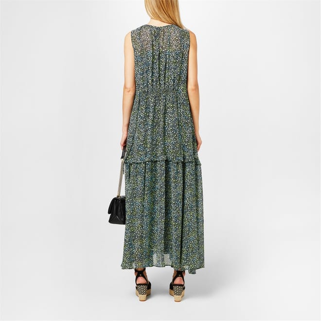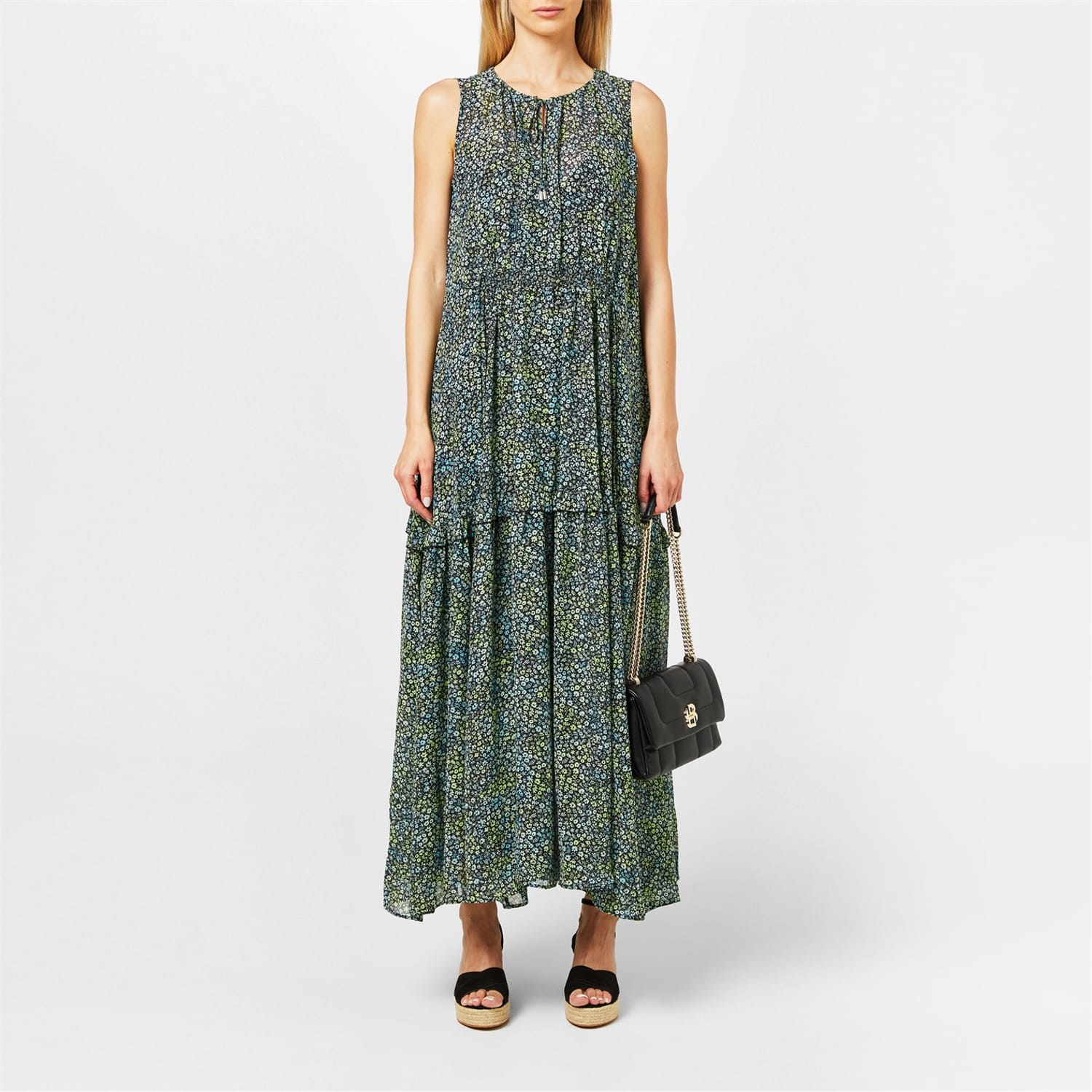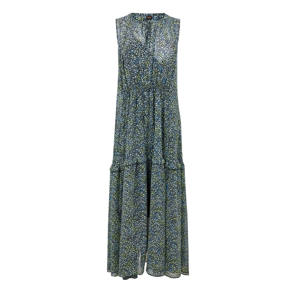This Boss maxi dress features a beautiful floral pattern, a crew neck, and a straight hem. The smocked detailing adds a touch of elegance to this sleeveless design, making it a perfect choice for any occasion. -