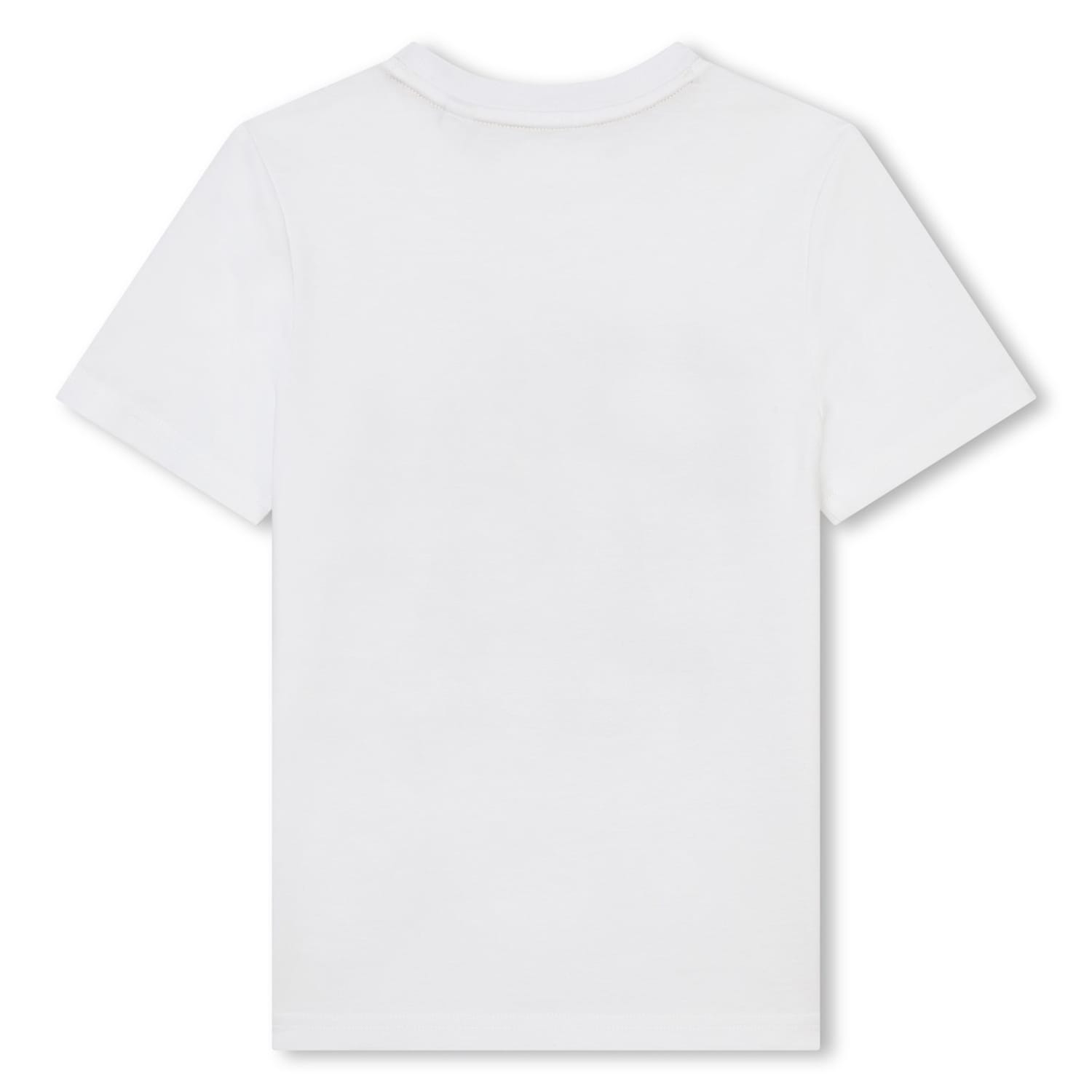 Let your young one experience Timberland with the Logo T-shirt, a wardrobe staple that combines quality and sustainability. Made from 100% cotton with at least 50% organic content, this eco-conscious top offers a soft and comfortable feel. Its regular fit and straight hem provide a classic silhouette, while the round neckline and short sleeves create a refined element.