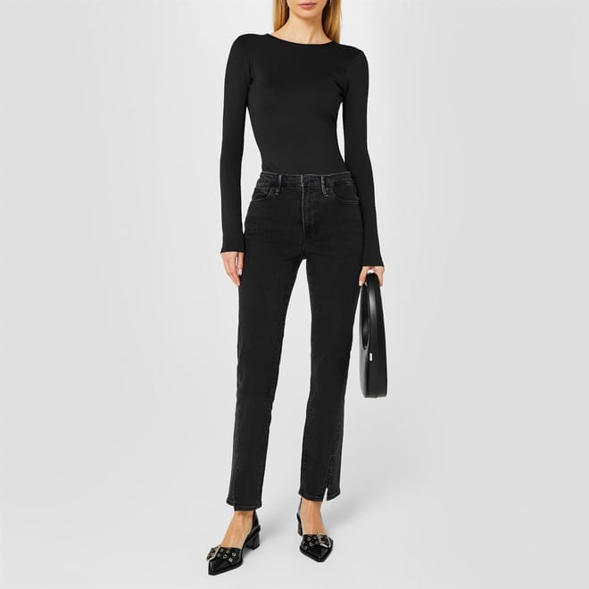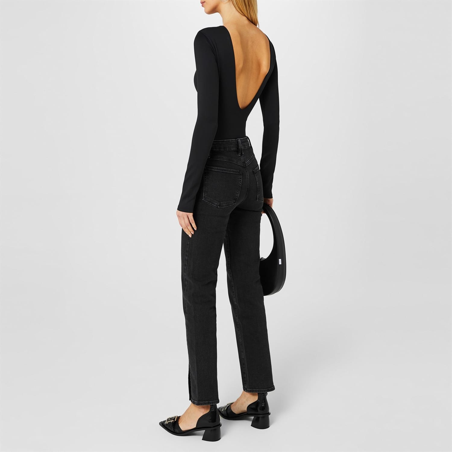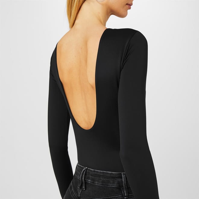 Discover the sleek and stylish bodysuit from Good American, perfect for spring and summer. This slim-fit top features a boat neck and long sleeves, ensuring a modern look. The solid pattern adds a touch of elegance, while the snap closure offers practicality. Ideal for sports enthusiasts, this bodysuit is a must-have addition to your wardrobe. -