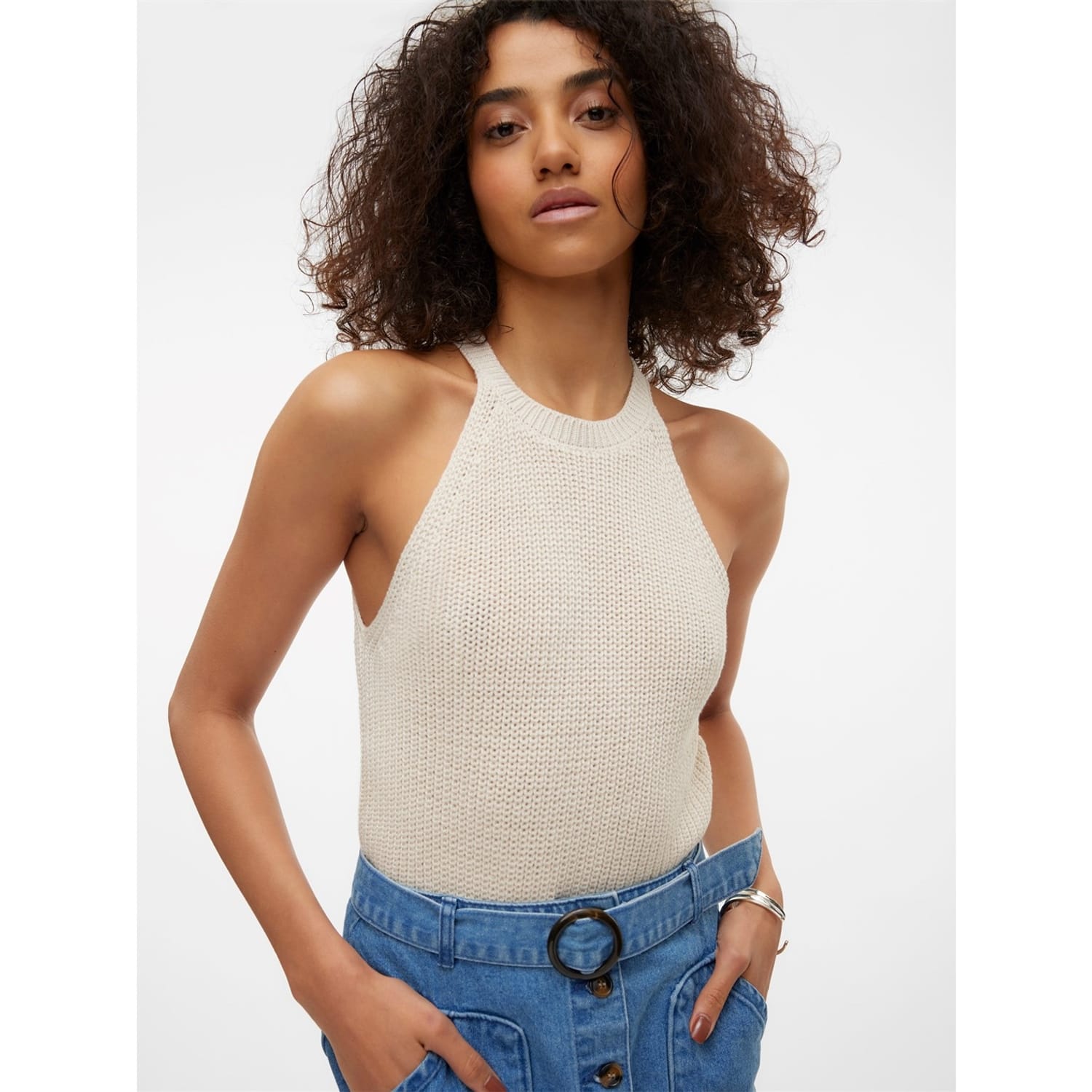 Discover the effortless elegance of Vero Moda with this sleeveless tank top. Featuring a halter neckline, this solid knit piece offers a regular fit, making it a versatile addition to your wardrobe. Perfect for those seeking a blend of style and comfort. -