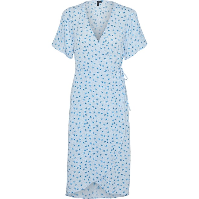 Elevate your wardrobe with this Vero Moda wrap dress. Featuring a midi length and a flattering V-neck, this dress is perfect for any occasion. The short sleeves and regular fit ensure comfort and ease of movement, while the floral pattern adds a touch of elegance. Ideal for both casual and formal settings, this dress combines style and sophistication effortlessly. -