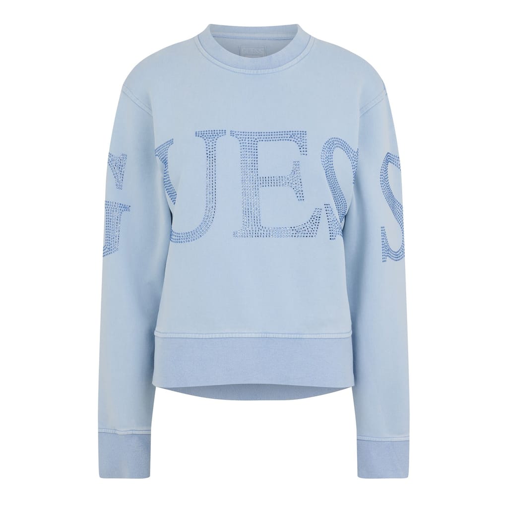 Elevate your wardrobe with this Guess sweatshirt, featuring a classic crew neck and long sleeves. Designed with a regular fit for everyday comfort, it includes ribbed cuffs and collar for a refined touch. The sweatshirt is adorned with a logo, making it a stylish choice for casual outings. -