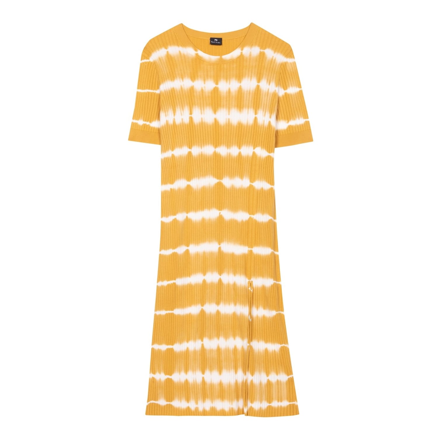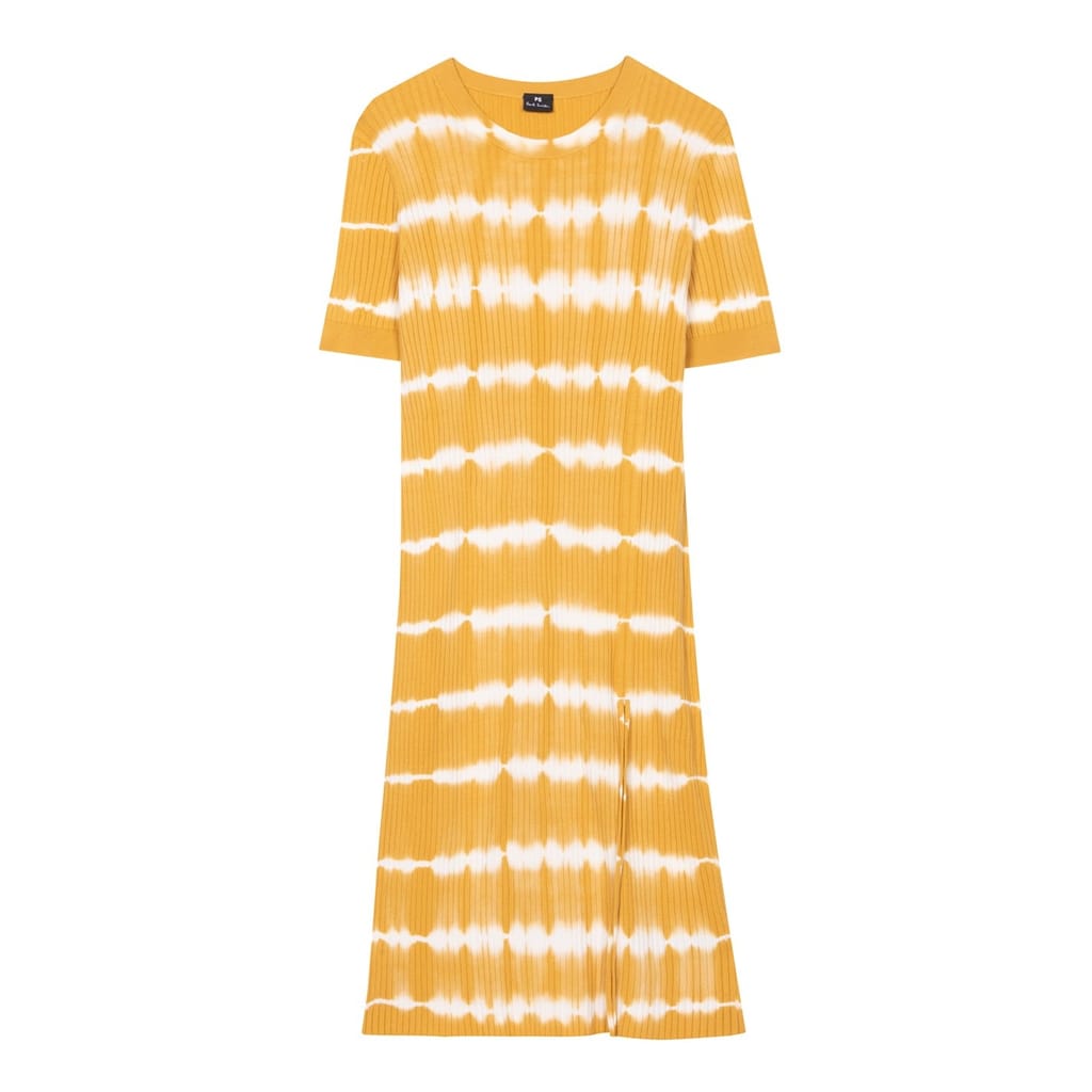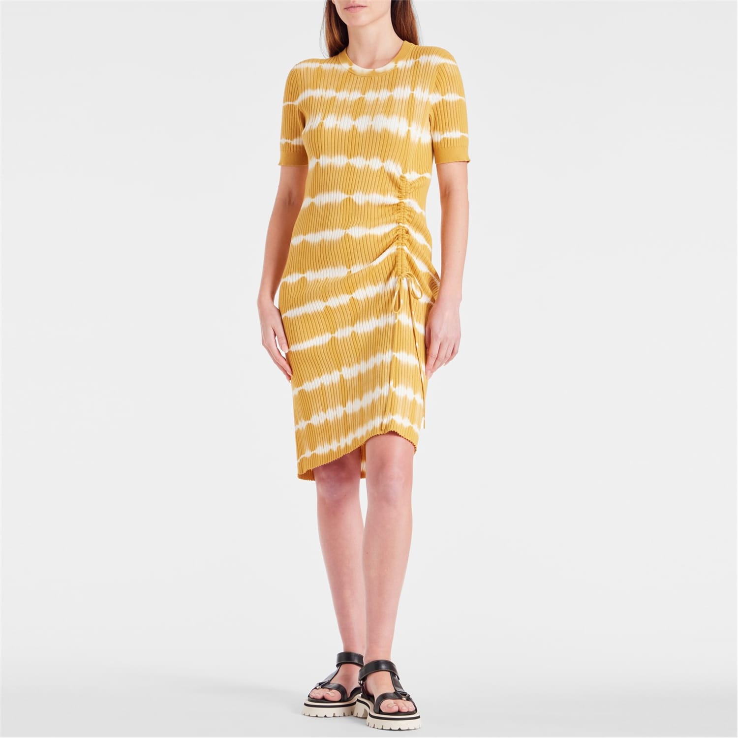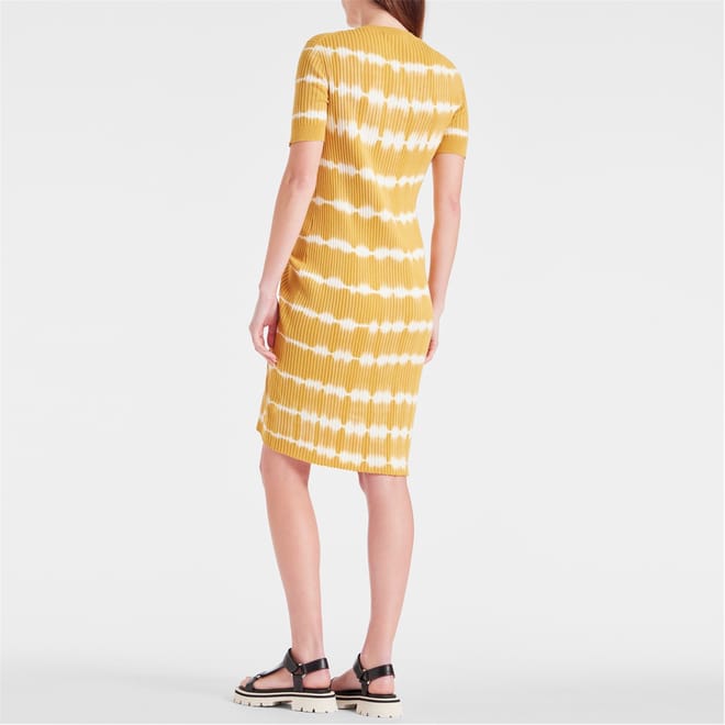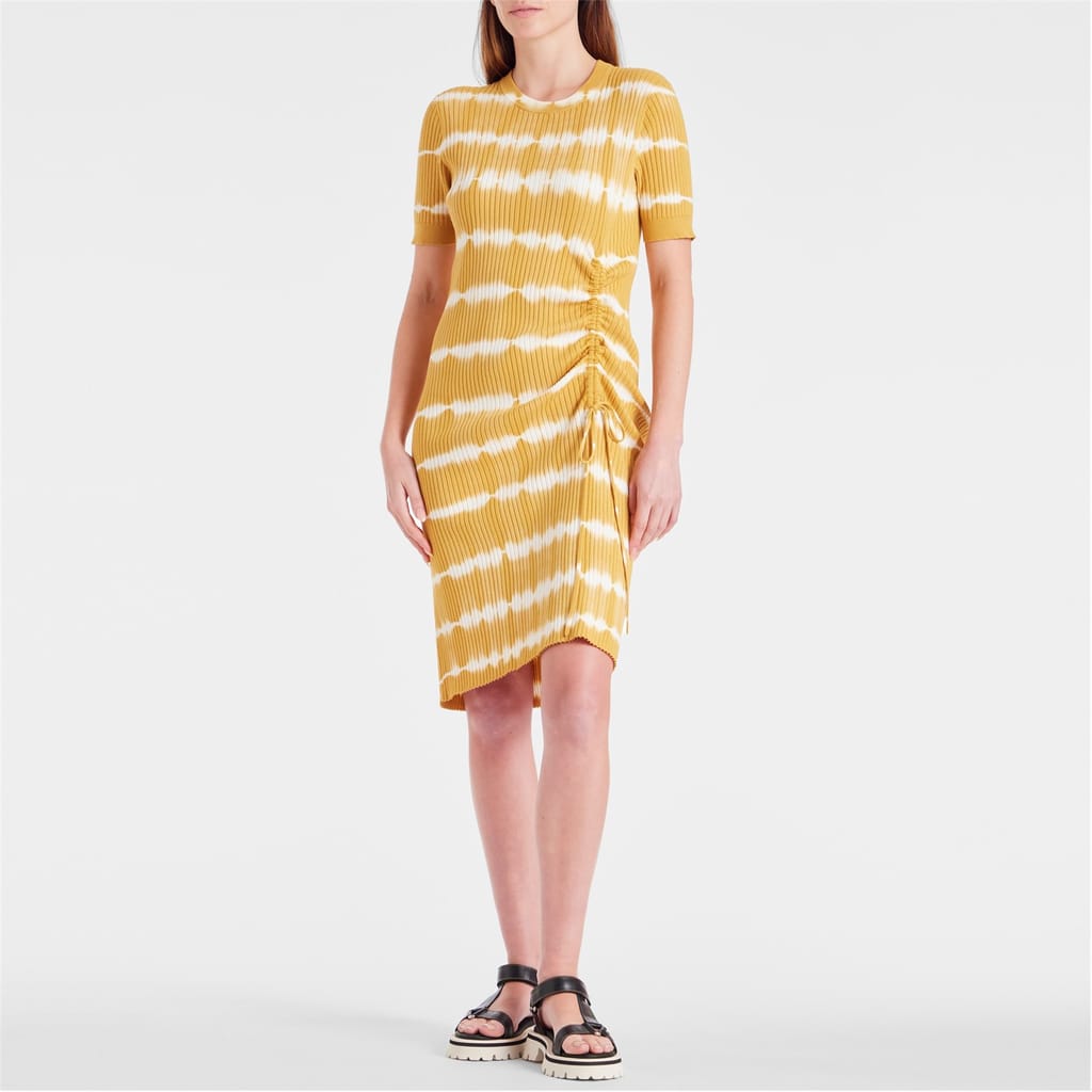 This PS Paul Smith midi dress features a T-shirt style with a crew neckline and short sleeves. The tie-dye pattern adds a unique touch to the knit material. Designed with a straight hem and a regular fit, this dress combines comfort and contemporary fashion effortlessly. -