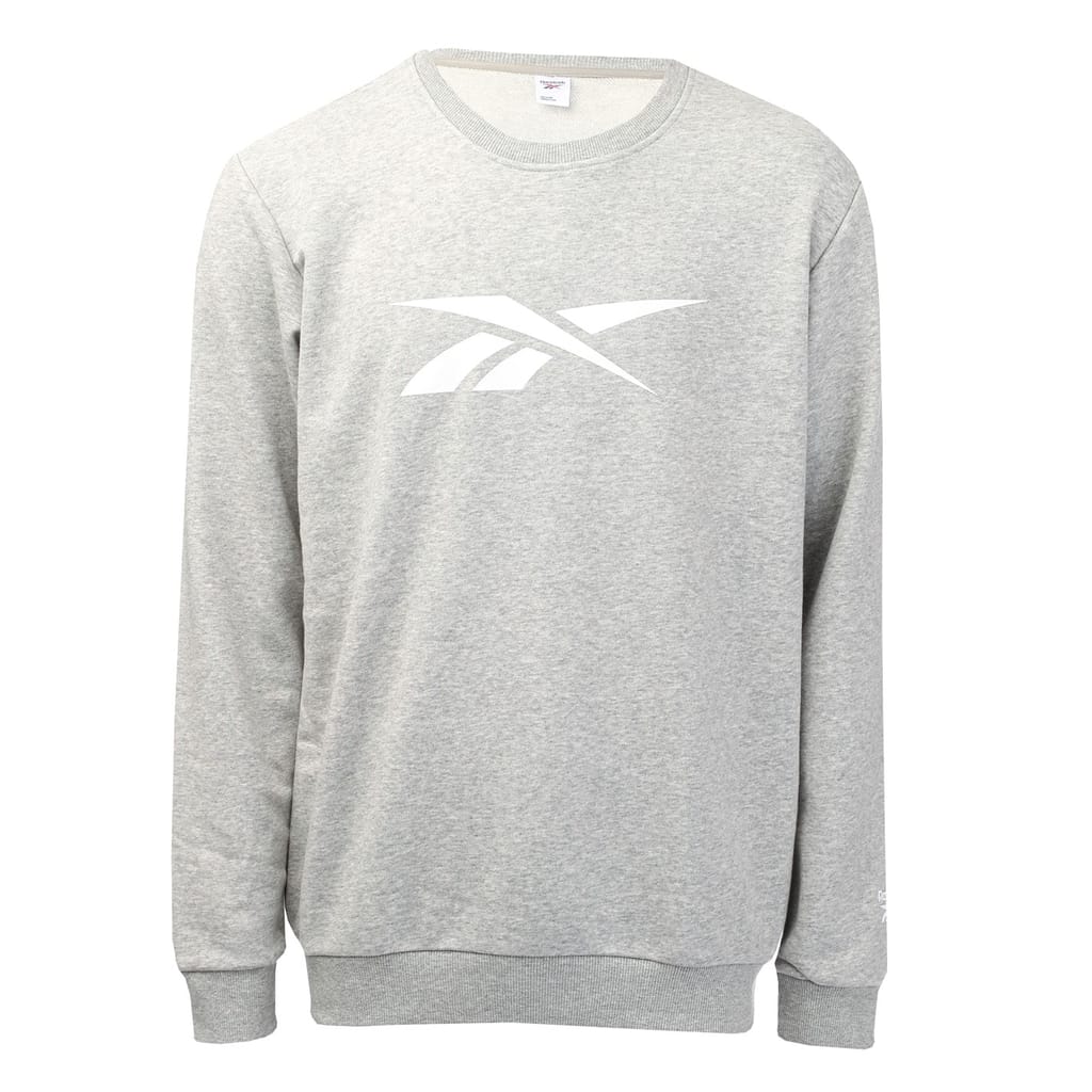 This Reebok sweatshirt is a staple for your sports wardrobe. Featuring a crew neck and long sleeves, it offers a regular fit for comfort. The solid design is complemented by ribbed cuffs, hem, and collar. Finished with a subtle logo embellishment, this piece promises both style and functionality. -