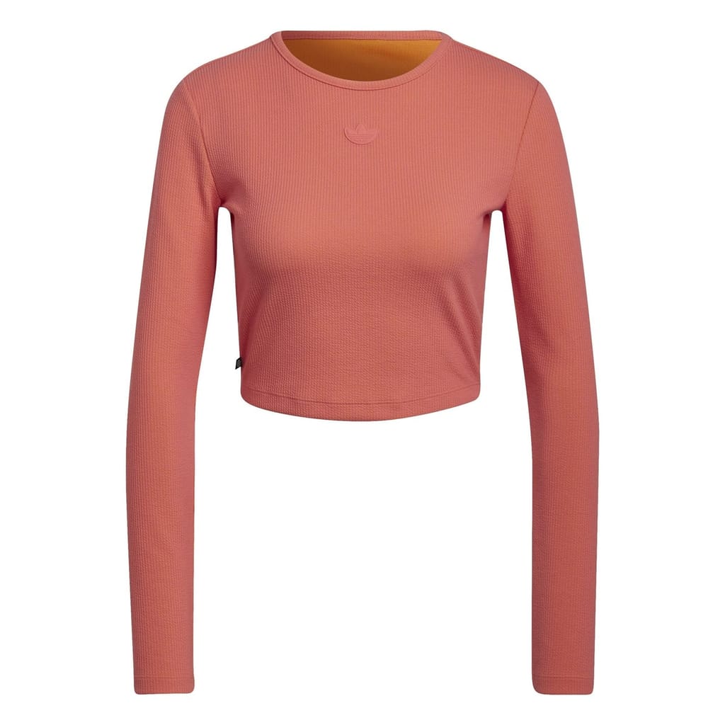 Embrace style with the adidas Originals cropped sweater. Perfect for autumn and winter, this solid long-sleeve top features a crew neck and ribbed cuffs. Part of the Barbie collection, it offers a slim fit and showcases a distinctive logo embellishment, making it an ideal choice for sports enthusiasts. -