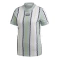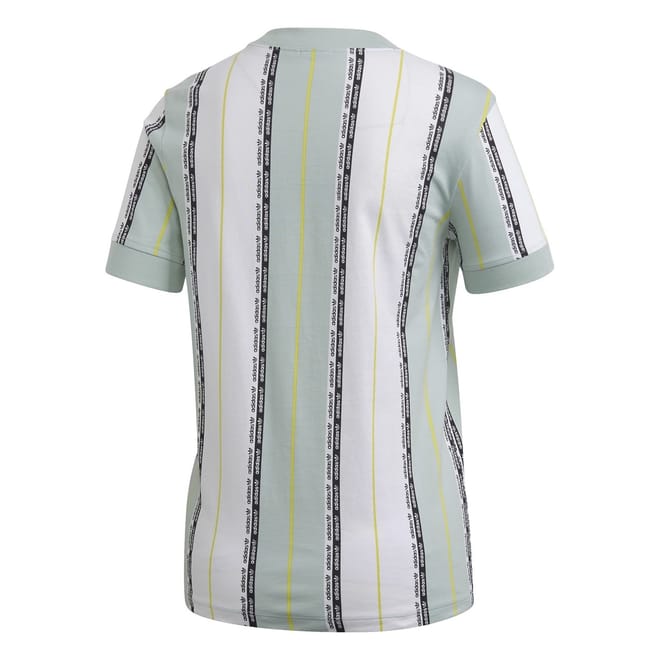 This Adidas t-shirt features a classic crew neck and short sleeves, making it a staple for casual collections. The vertical stripe pattern adds a touch of style, while the regular fit ensures comfort. Finished with a subtle logo embellishment, this top is both versatile and trendy. -