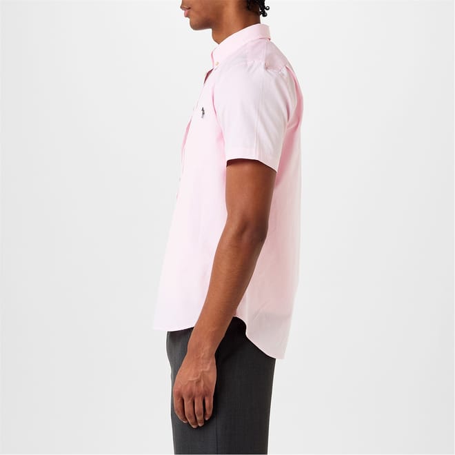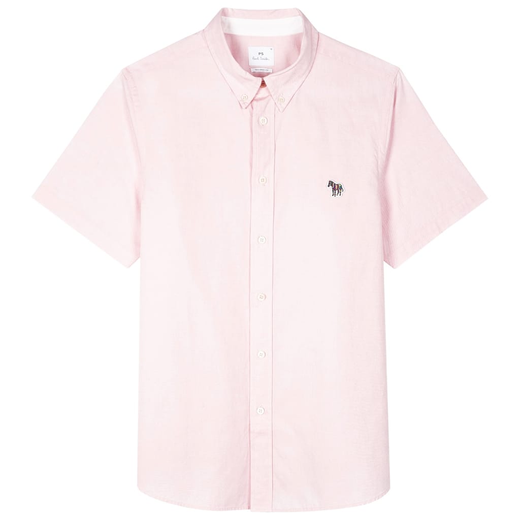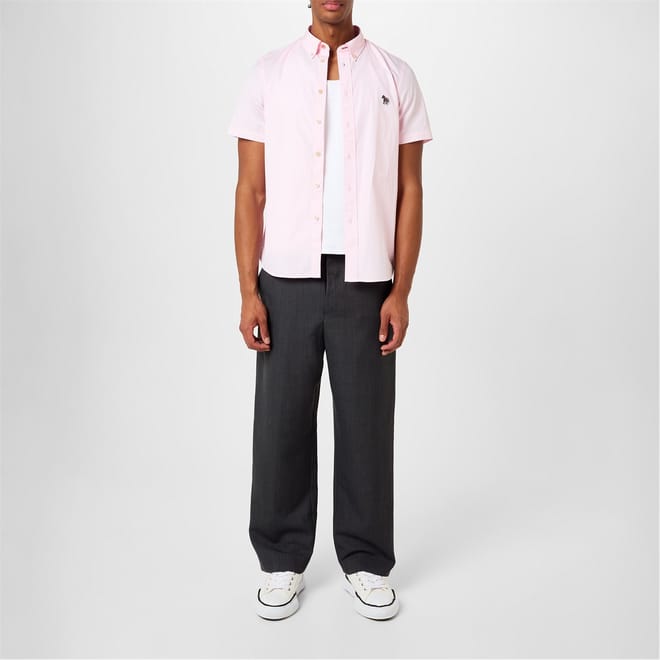 Embrace bold style with this PS Paul Smith shirt from the Barbie collection. Featuring a striking zebra pattern, short sleeves, and a button-down closure, this slim-fit dress shirt is perfect for a standout look. The button-down collar adds a classic touch to this trendy piece. -
