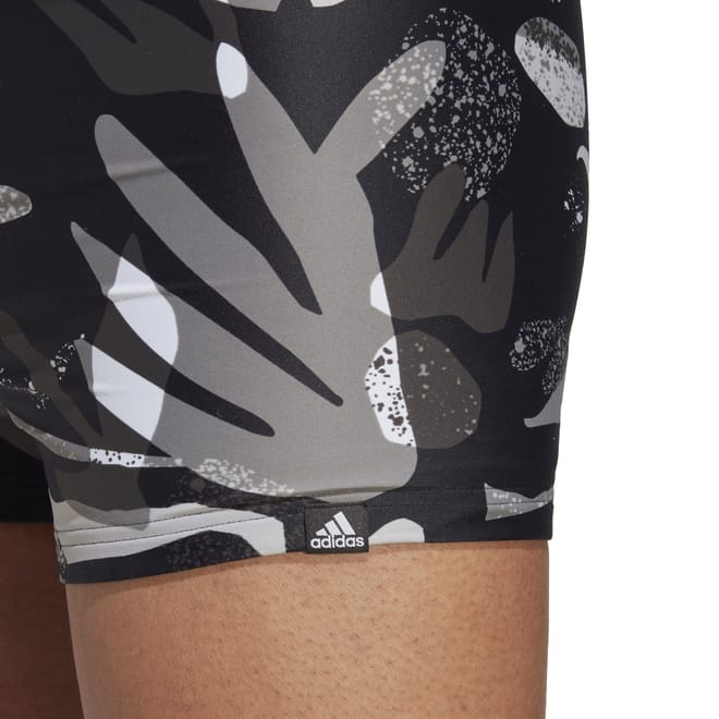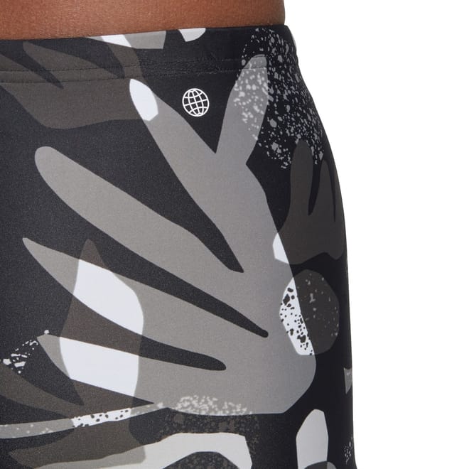 Designed for individuals who care about performance and style, the adidas Floral Graphic Swim Boxers are a must-have for your next swim session or water sports outing. Made with a minimum of 70% recycled materials, these swim boxers represent adidas' commitment to helping end plastic waste while the Infinitex Fitness Eco is a chlorine-resistant finish designed to withstand the rigorous demands of swimming and leisure watersports. Cut in a tight fit that hugs the body, the thigh-length silhouette allows you to move without restriction. Adorning an elasticated waistband with a secure drawcord to the mid-rise waistband, this pair boast a striking monochromatic floral pattern all-over for an eye-catching look with instant summer vibes.