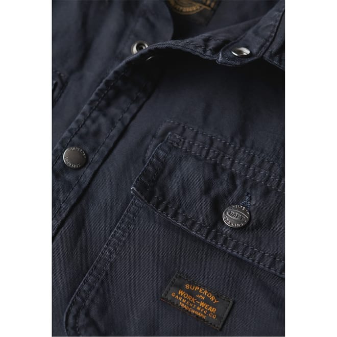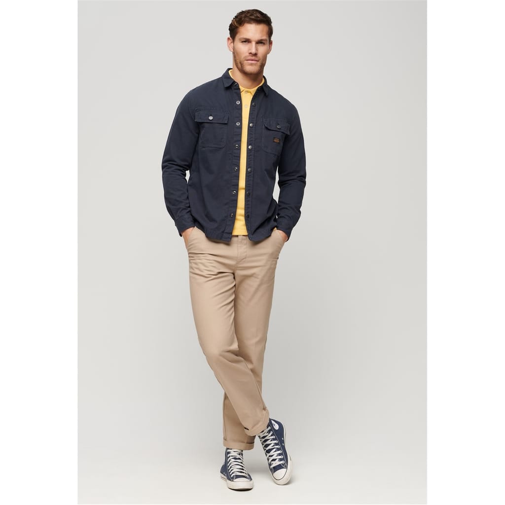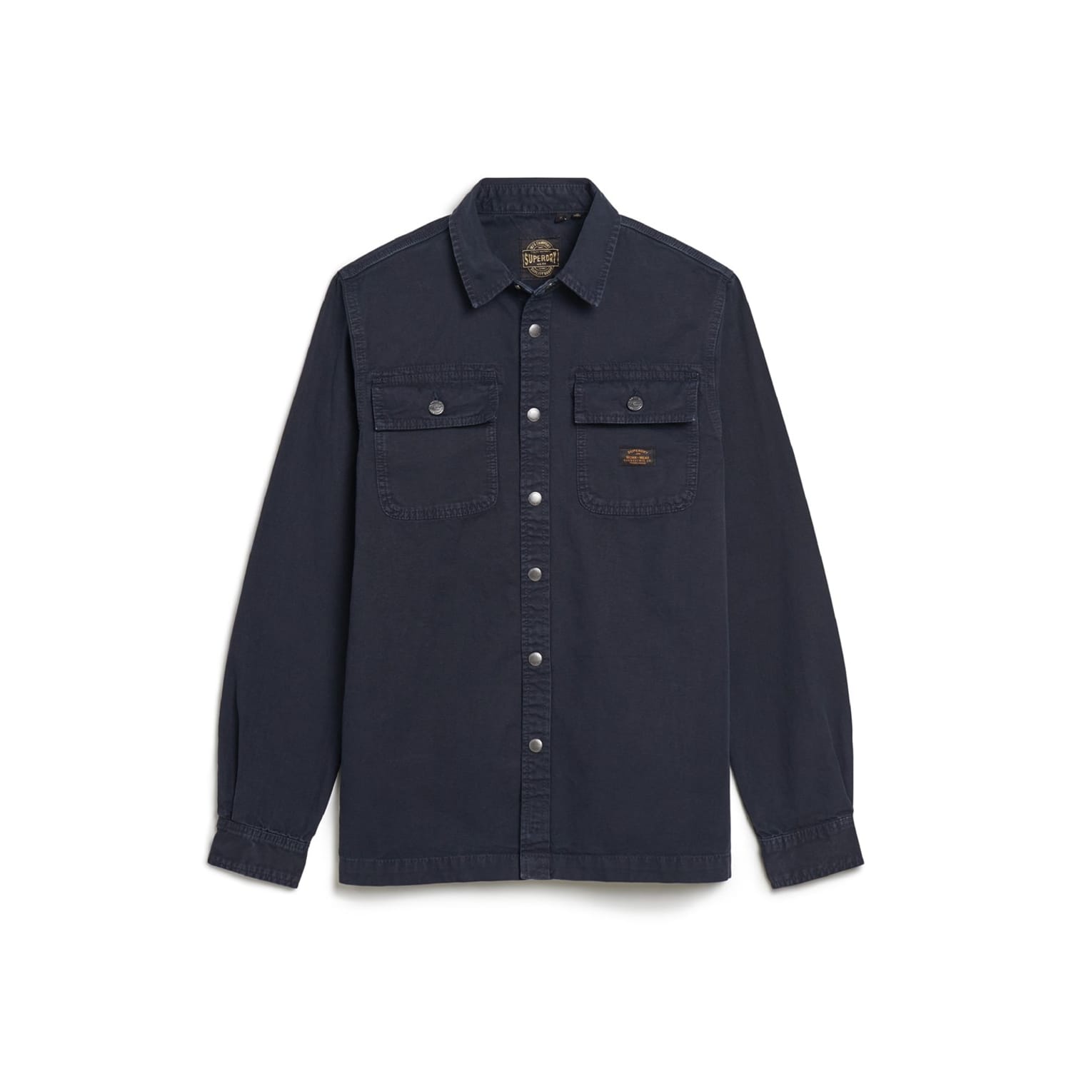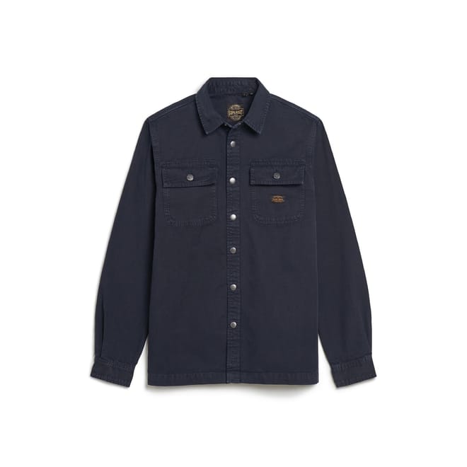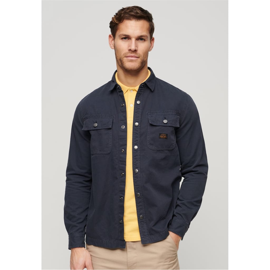 This Superdry shirt jacket combines a classic collared neckline with a button closure for a timeless appeal. Crafted in a solid pattern, it features a regular fit that ensures comfort. Embellished with logo patches and practical pockets, it offers both style and functionality. Perfect for adding a layer of warmth and style. -