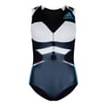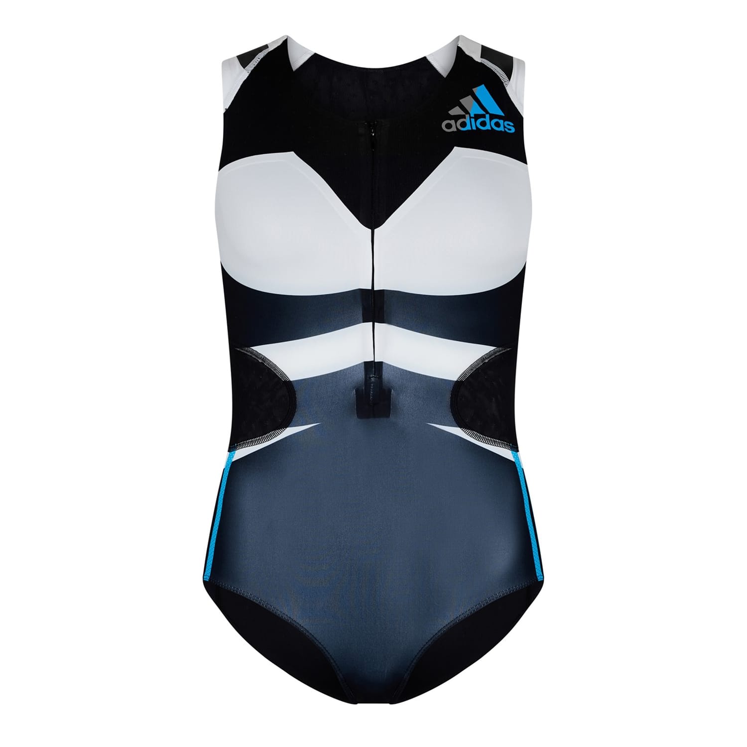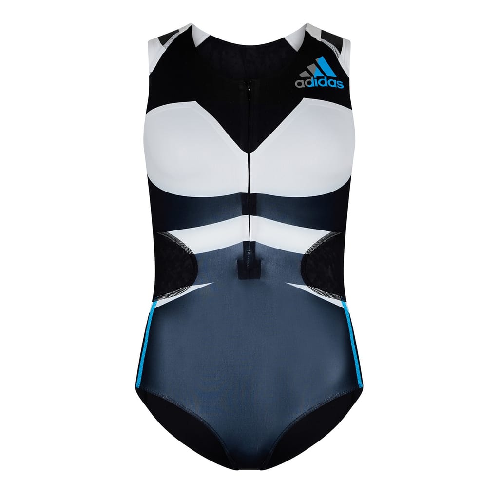 Elevate your activewear wardrobe with this adidas bodysuit. Designed with a crew neck and sleeveless style, it offers a modern color block pattern and slim fit for a sleek look. The added zipper closure ensures ease of wear, while the logo embellishment adds a touch of brand recognition. Ideal for a trendy and comfortable look. -