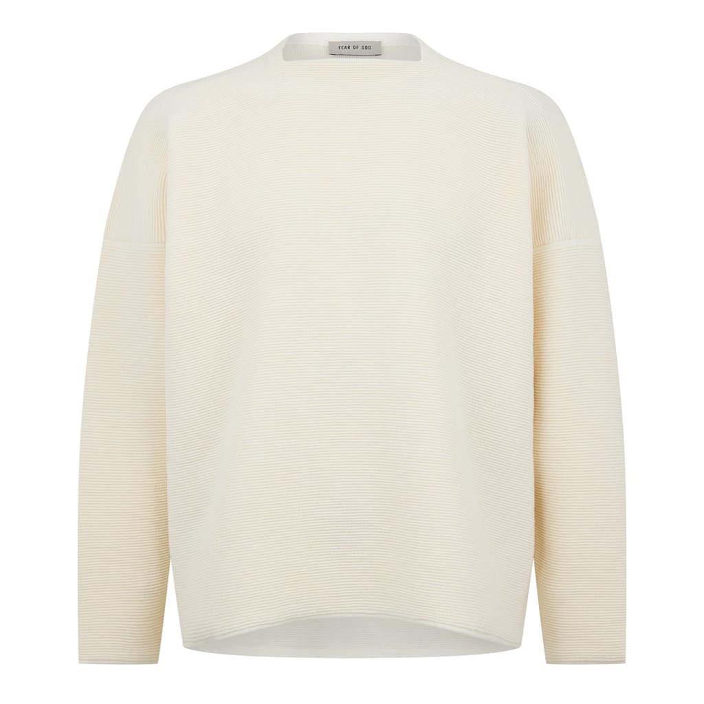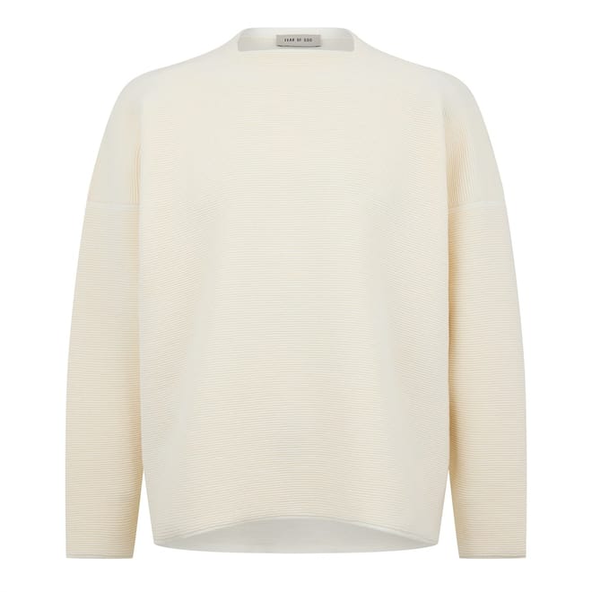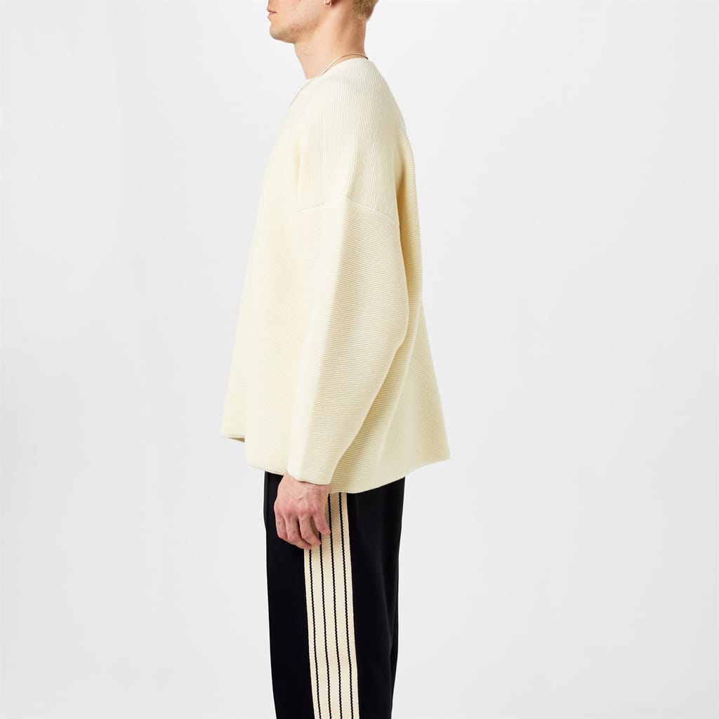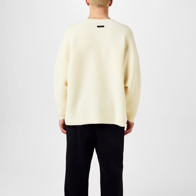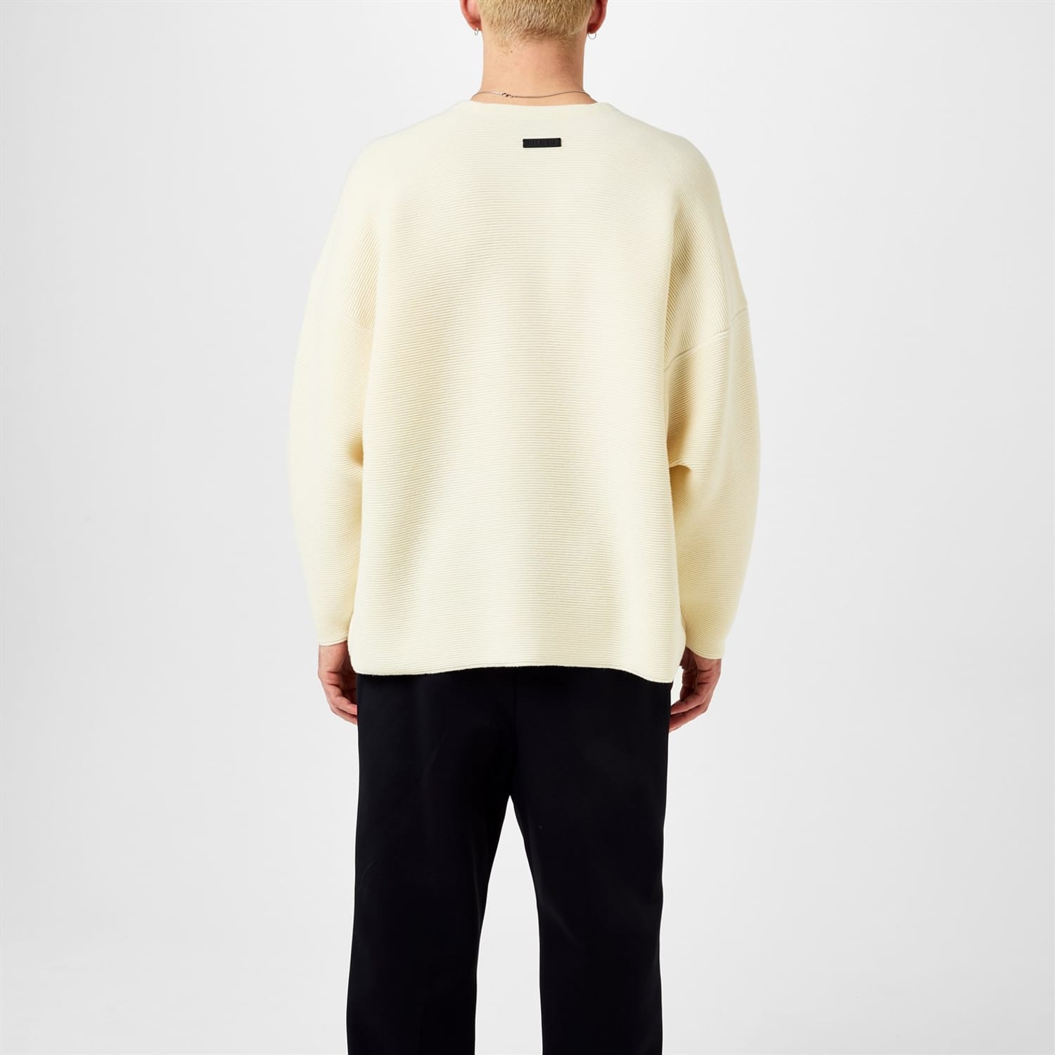 - Embracing understated exclusivity, the signature Fear of God leather label subtly adorns the back collar, a mark of the house's impeccable craftsmanship and luxury prestige. The simplicity in colouring ensures versatility and ease in styling, enabling effortless transitions from day to night, making this knitted jumper the perfect choice for days in the city to dinners with friends.