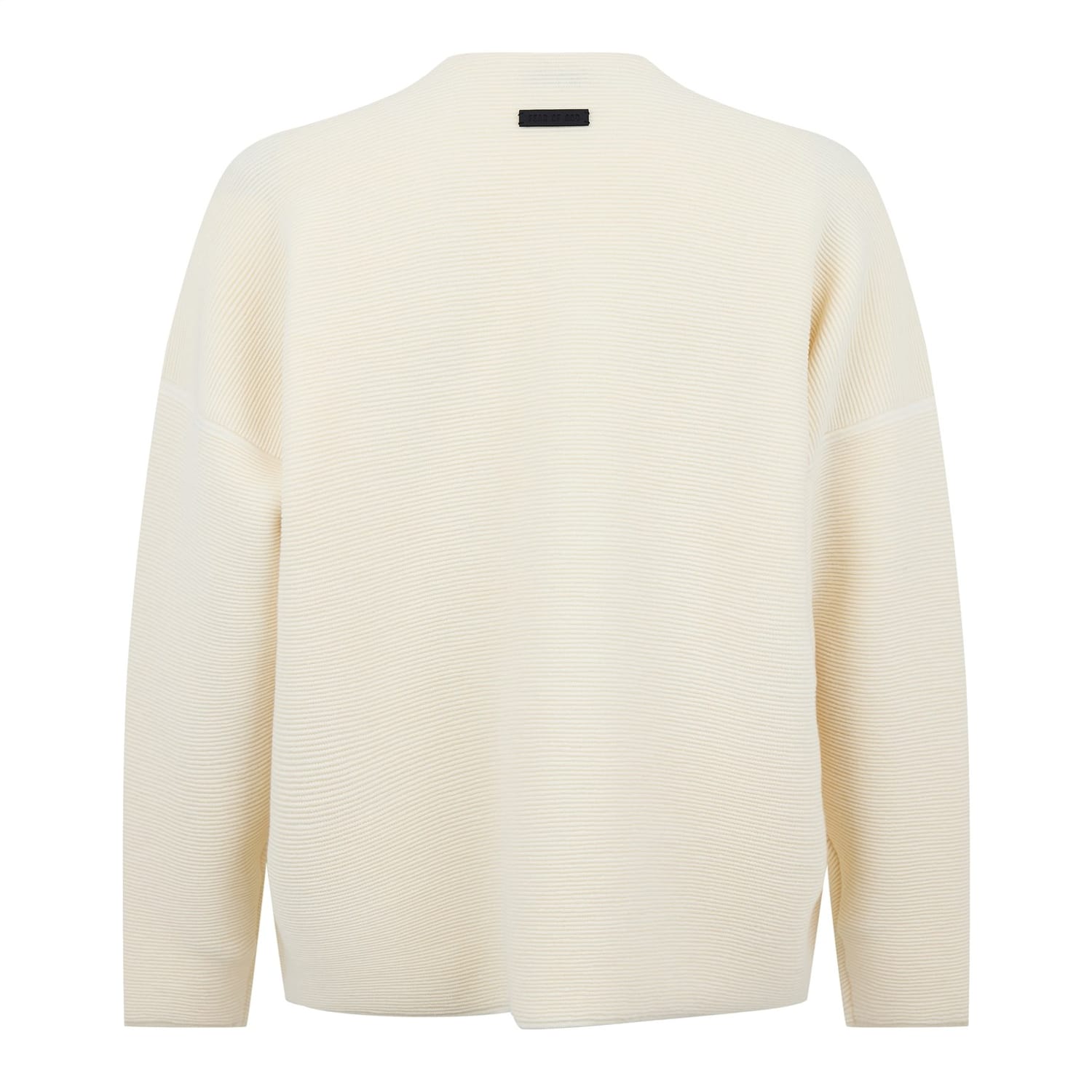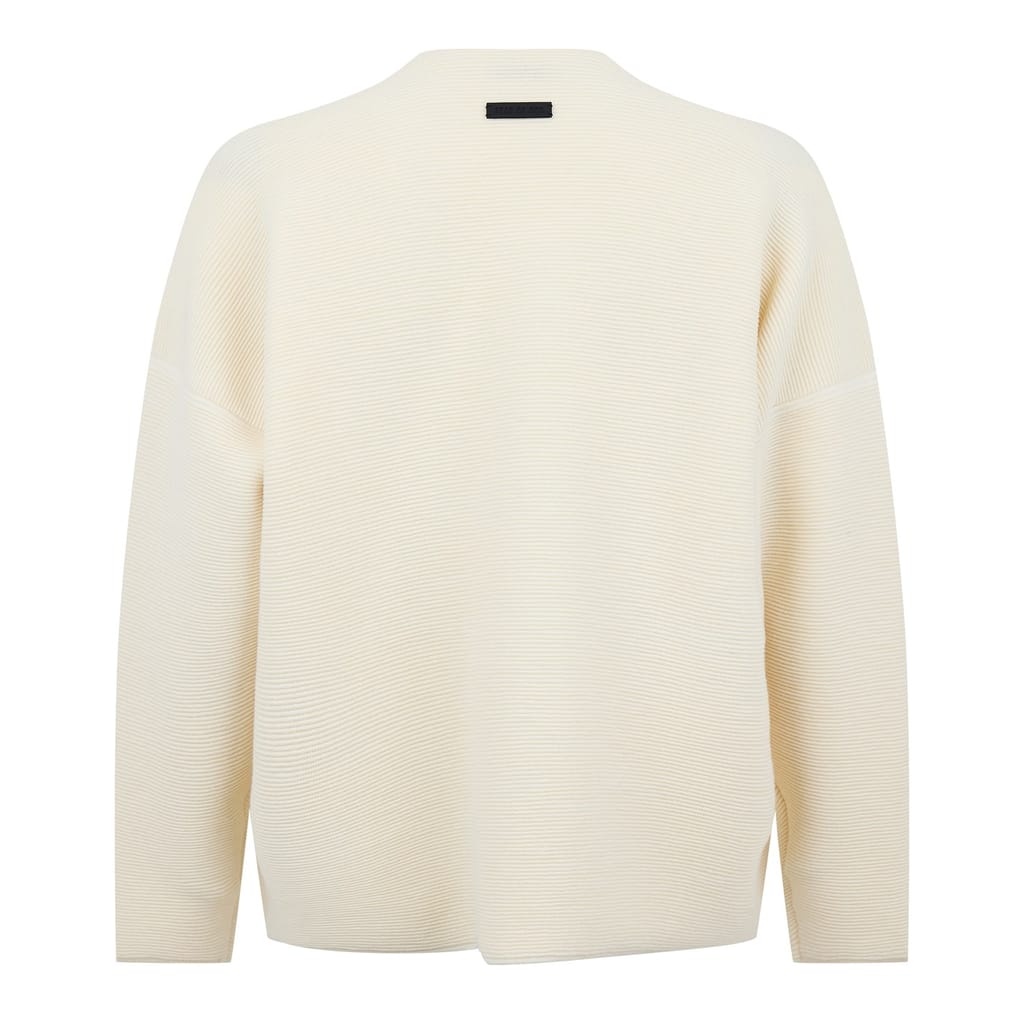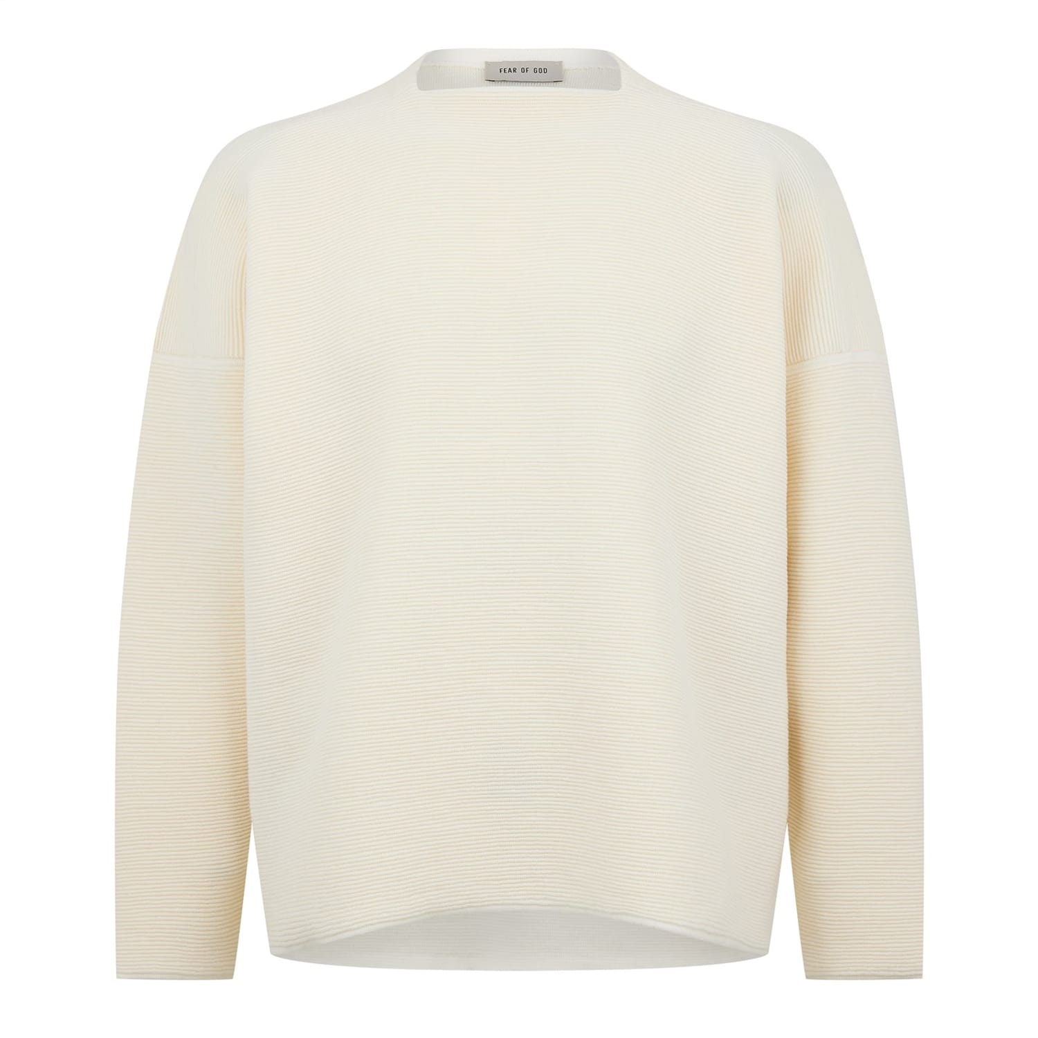 - Embracing understated exclusivity, the signature Fear of God leather label subtly adorns the back collar, a mark of the house's impeccable craftsmanship and luxury prestige. The simplicity in colouring ensures versatility and ease in styling, enabling effortless transitions from day to night, making this knitted jumper the perfect choice for days in the city to dinners with friends.