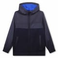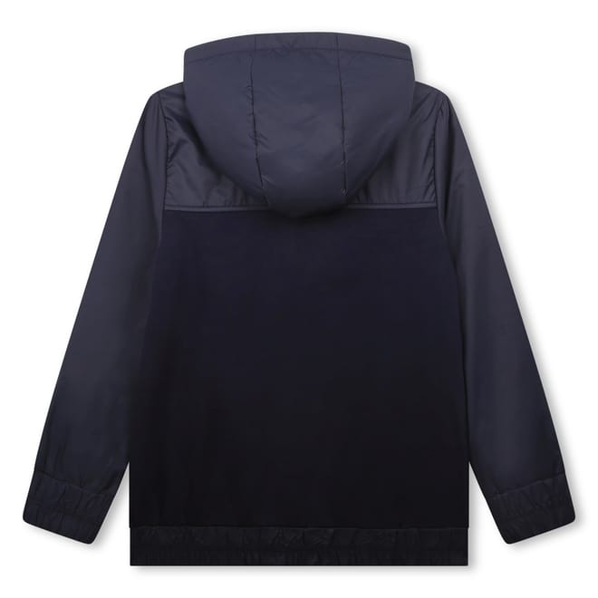 Stay protected with the Boss windbreaker jacket, featuring a hooded neckline and zipper closure. This solid-patterned outerwear is designed with a regular fit and straight hem, ideal for sports enthusiasts. The knit fabric offers comfort, while the logo embellishment adds a touch of style. -