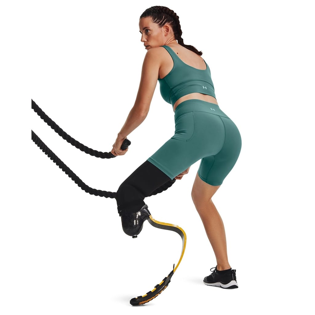 Get ready to discover the blend of comfort and performance with Under Armour's Meridian Fitted Crop Tank. Crafted from polyester and elastane, the soft and stretchy knit material offers support and lasting comfort. Featuring sweat-wicking fabric that dries quickly, ensuring you stay cool and dry through every workout, while the 4-Way Stretch technology, coupled with a scoop neck and back, allows for unrestricted movement in every direction. The inner mesh lining on the front enhances breathability, keeping you fresh and energised, while the brassiere with removable padding provides added support and coverage, making it perfect for those intensive training sessions.