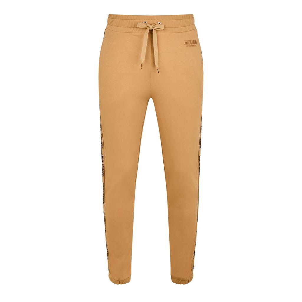 Immersed in the world of luxury fashion, Moschino presents the resplendent Logo Tape Jogging Bottoms, a masterpiece designed for those who seek refinement and elegance in every detail. Crafted from a sumptuous blend of cotton and elastane, these Jogging Bottoms exude a timeless allure in a serene beige hue, epitomizing sophisticated comfort.