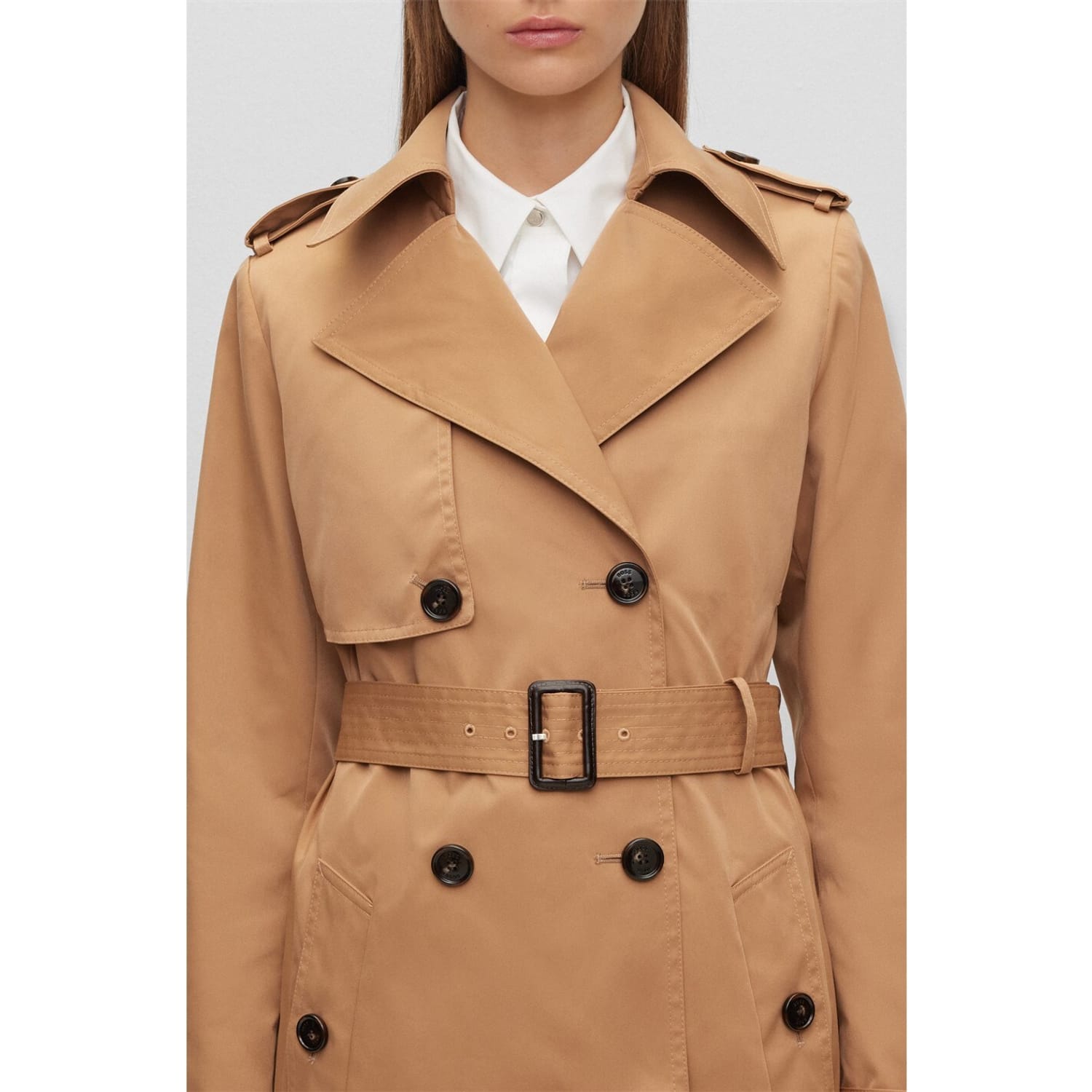 Elevate your outerwear collection with Boss' Trench Coat, a brand renowned for its exquisite craftsmanship and tailoring. Featuring branded tortoiseshell buttons creating a timeless finish. From bustling city streets to winter walks, this double-breasted coat is the perfect layering piece.