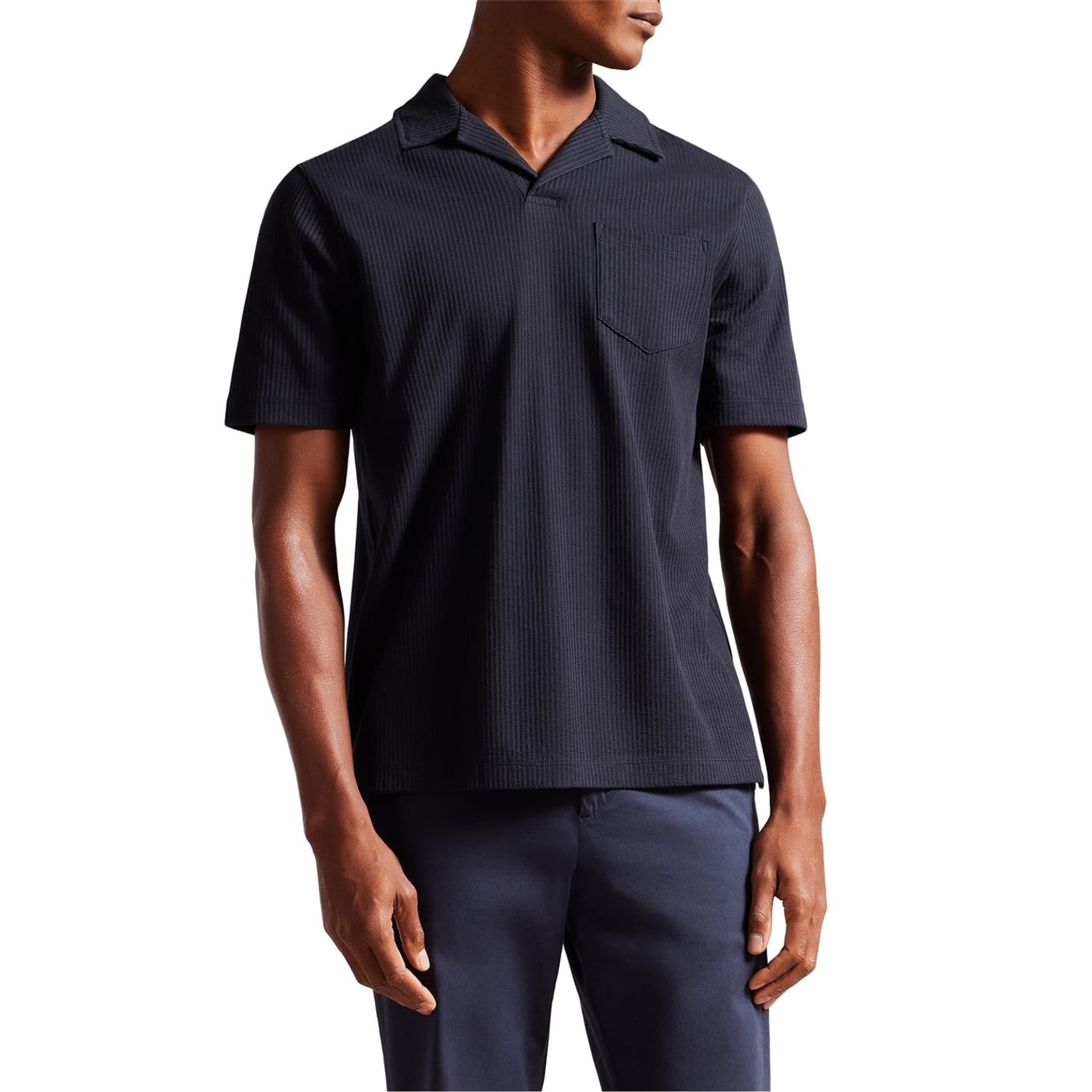 - Crafted from 100% cotton, this polo shirt offers a sumptuously soft and breathable feel against the skin. With an open collar and short sleeves, this polo shirt presents a streamlined and timeless aesthetic. Equipped with a chest pocket for a dash of functionality, this shirt seamlessly blends fashion with practicality. Designed in a solid colourway, this polo shirt offers versatility, making it effortless to pair with the rest of your ensemble. To complete the look, the shirt is adorned with a subtle stripe texture that adds a touch of sophistication and visual interest, elevating the classic polo shirt design. Machine washable, follow care instructions.