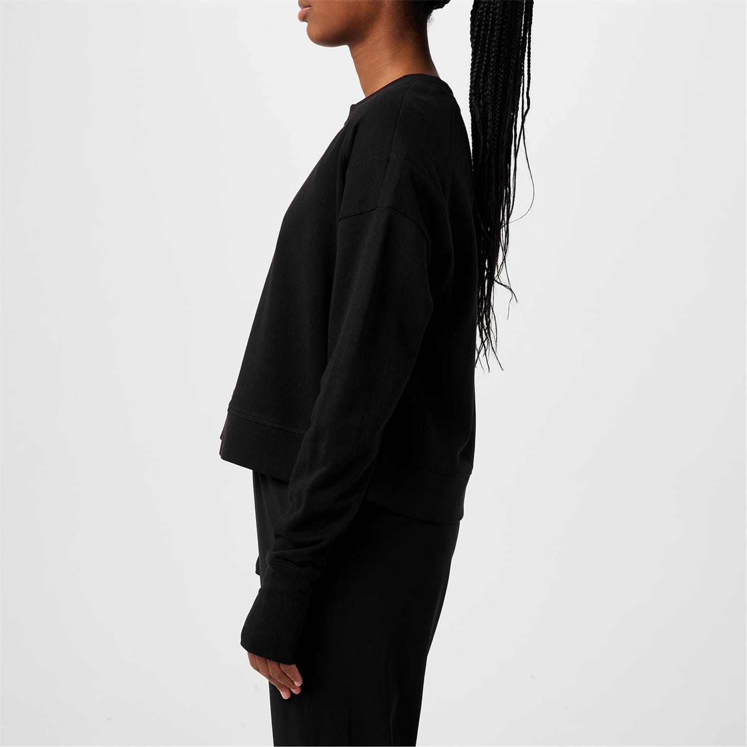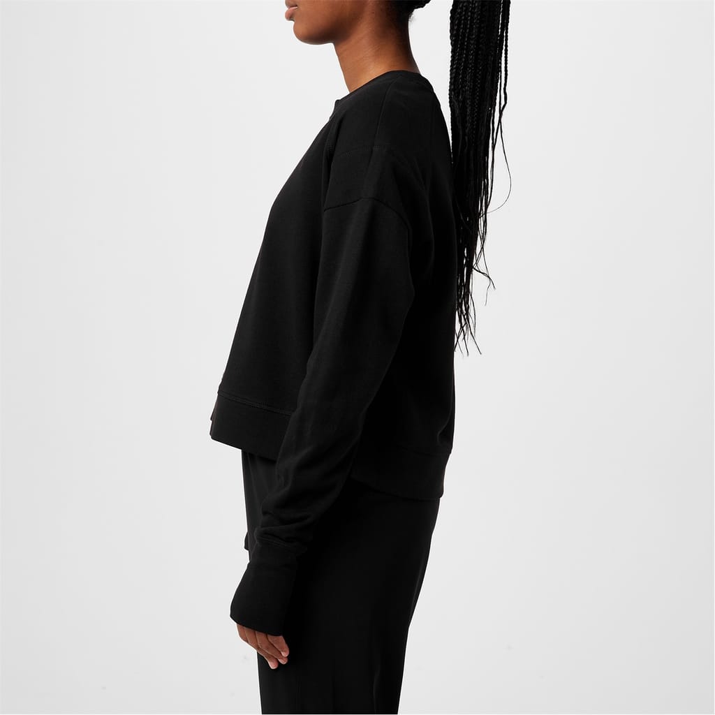 Elevate your exercise ensemble with this Sweaty Betty Delight Luxe Fleece Pullover by renowned fitness brand Sweaty Betty. Expertly crafted from a soft and insulating fleece this pullover sweater provides warmth and cosiness during cooler seasons. whilst the use of recycled Italian cotton makes this sweater a sustainable addition to your eco-conscious wardrobe. With its cropped fit and classic crew neck, this cropped sweatshirt offers a stylish and versatile look, whilst the ribbed waistband adds a touch of elegance, creating a blouson effect through the bodice. Framed with long sleeves with ribbed cuffs this look boasts a comfortable feel. Designed in a classic colourway this look is defined by its versatility; Wear it for a casual day out, a workout session, or simply for lounging at home. Pair it with Sweaty Betty's Luxe Fleece trouser styles for a complete and fashionable ensemble.