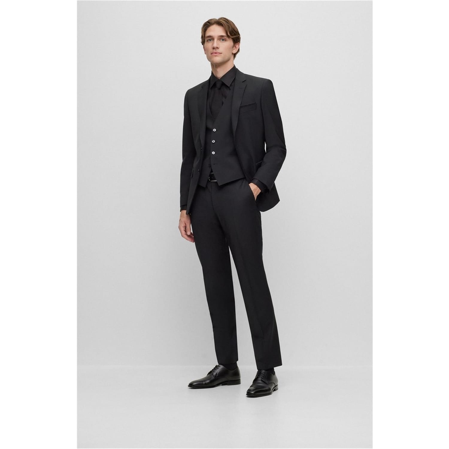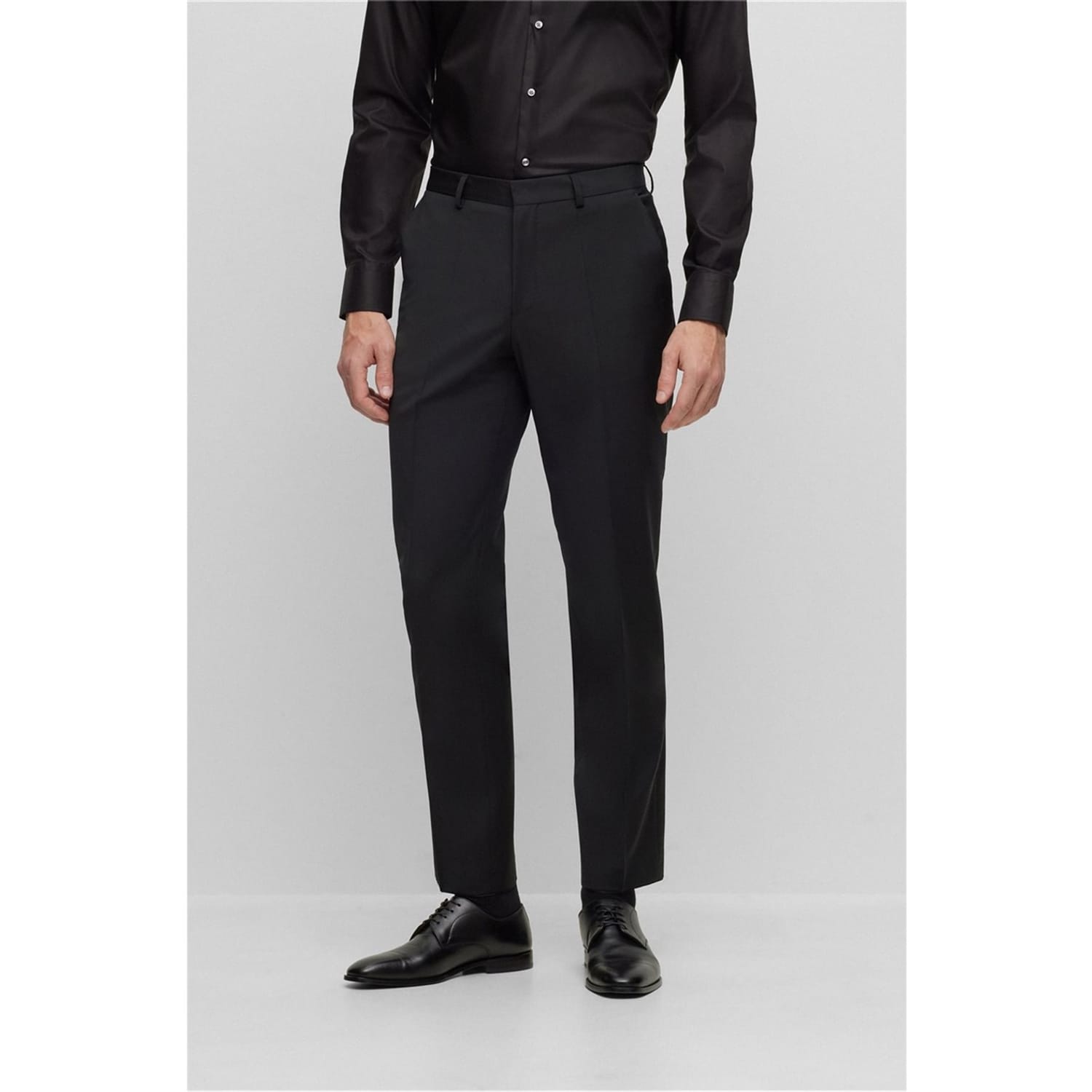 The BOSS H-Leon Suit Trousers combine traditional tailoring with contemporary comfort, made from fabric with stretch elements. These trousers deliver a smart look for special occasions while maintaining freedom of movement.