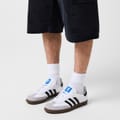 - The monochrome colourways ensure that these gentleman's sneakers fit effortlessly into any ensemble, making them a versatile addition to your collection that you will reach for time after time. Of course, no adidas design is complete without the signature 3-Stripes motif on the sides and a contrasting trefoil patch on the tongues to deliver immediate brand appreciation. Engraved Samba lettering on the outer edges completes the des -