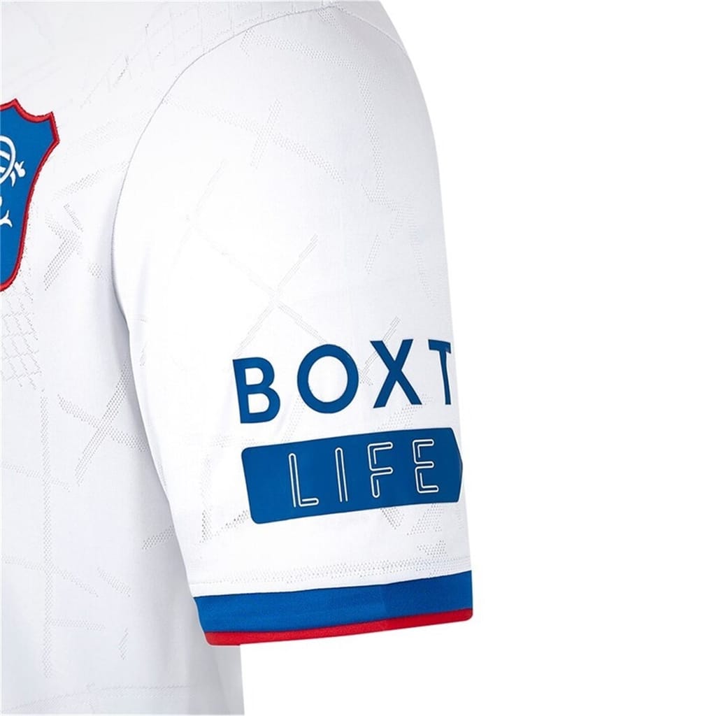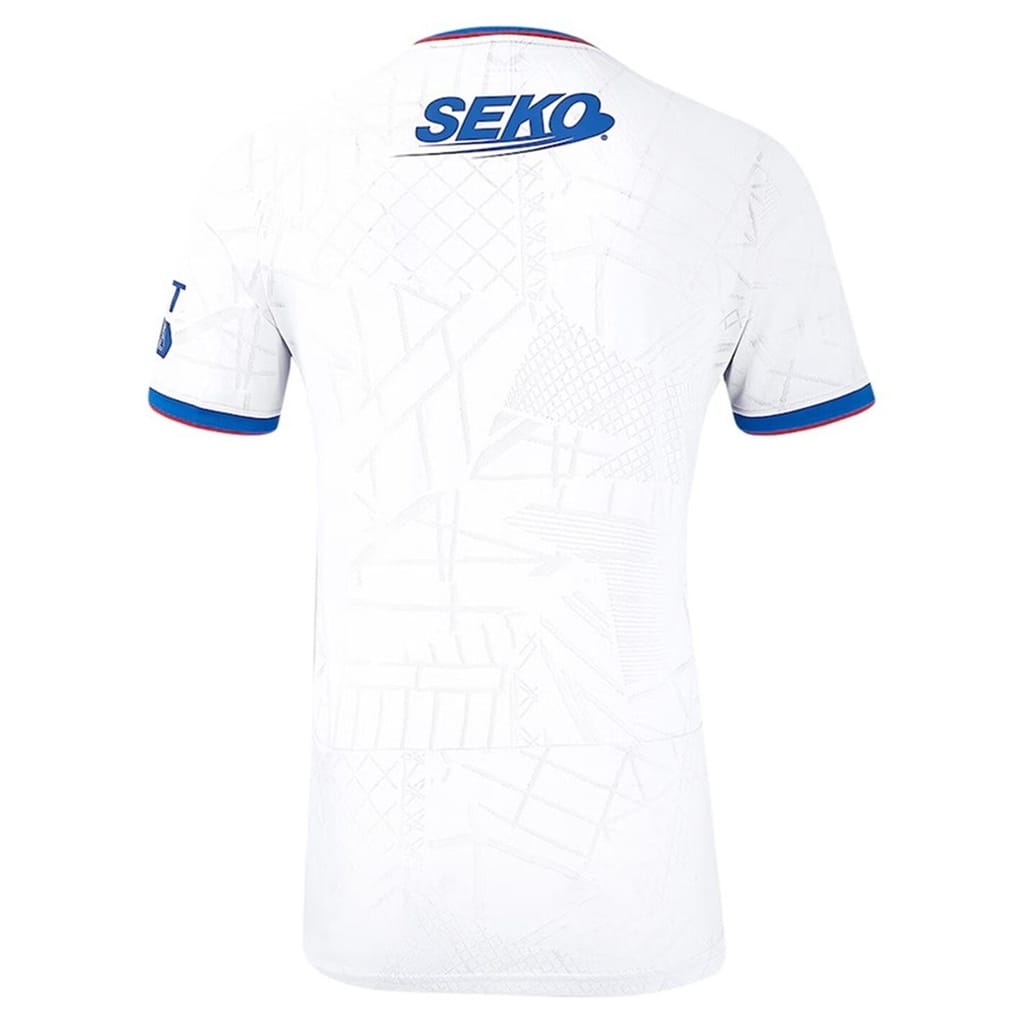 - Adorned with striking red and blue tipping, the predominantly white shirt features mesmerising grey interlaced graphics showcasing the vibrant spirit of Glasgow. The iconic Castore wings and team badge are proudly positioned on either side of the chest. Designed for die-hard Rangers fans, elevate your game and make a powerful statement with the Castore Rangers Authentic Away Shirt 2024 2025 Adults.