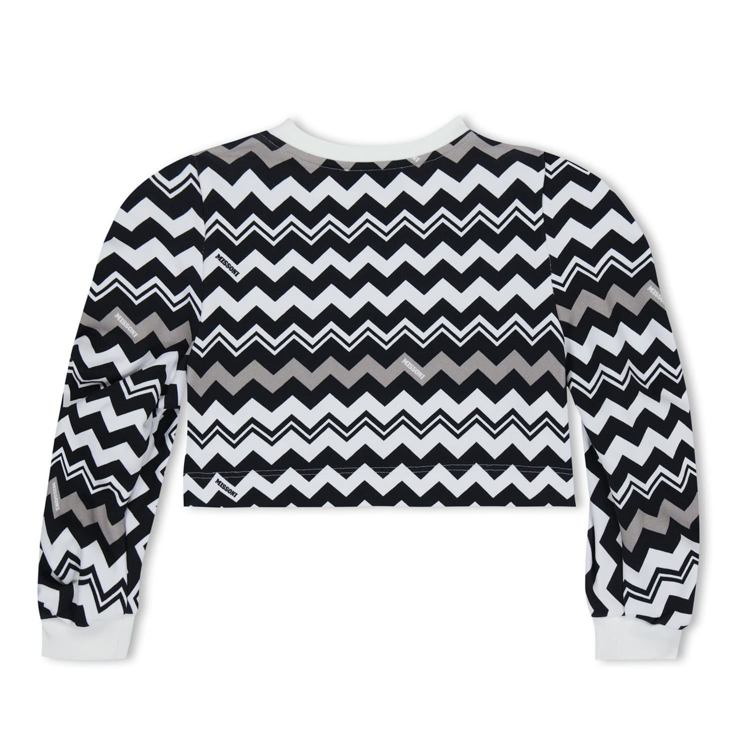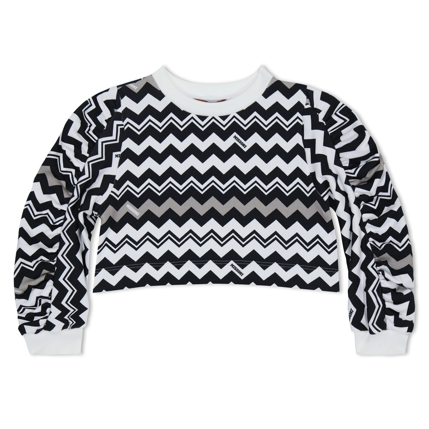Bring luxe sophistication to your little one's wardrobe with this Ruffled Sweatshirt from Missoni. Meticulously crafted using artisanal techniques in loopback cotton, this modern classic features a round neckline, full-length sleeves, ribbed trims, a straight hem, and discreet tonal stitching. The brand's iconic Zig-Zag motif and ruffled detailing to the sleeves elevate the design and provide an unforgettable silhouette. Finally, the repeated Missoni logo provides instant brand recognition with a high-end flourish. Main fabric: 100% cotton; Trim: 94% elastane. Machine wash at 30 degrees.