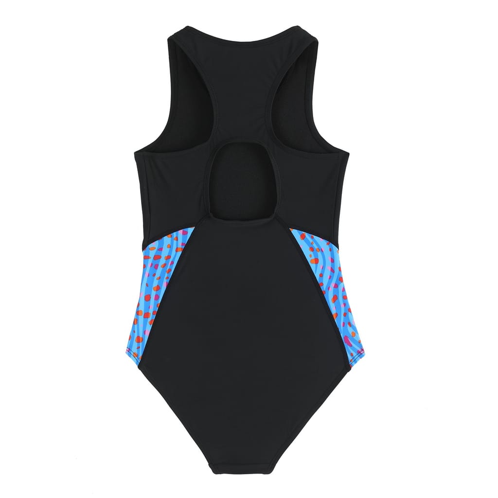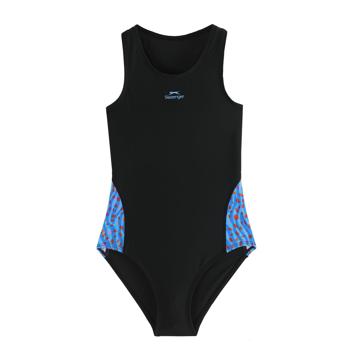 Your little one will make a splash this summer with the Slazenger Splice Racerback Swimsuit. Expertly made from a blend of recycled Nylon and LYCRA, this swimsuit is stylish,sustainable and stretchy, with its 4-way stretch technology allowing for a streamlined fit. With the racerback design, this swimsuit keeps you cutting through the water comfortably and confidently. Designed in a classic colourway this swimsuit is punctuated by the vibrant splice pattern on the sides and iconic logo on the centre for a distinctive finish.