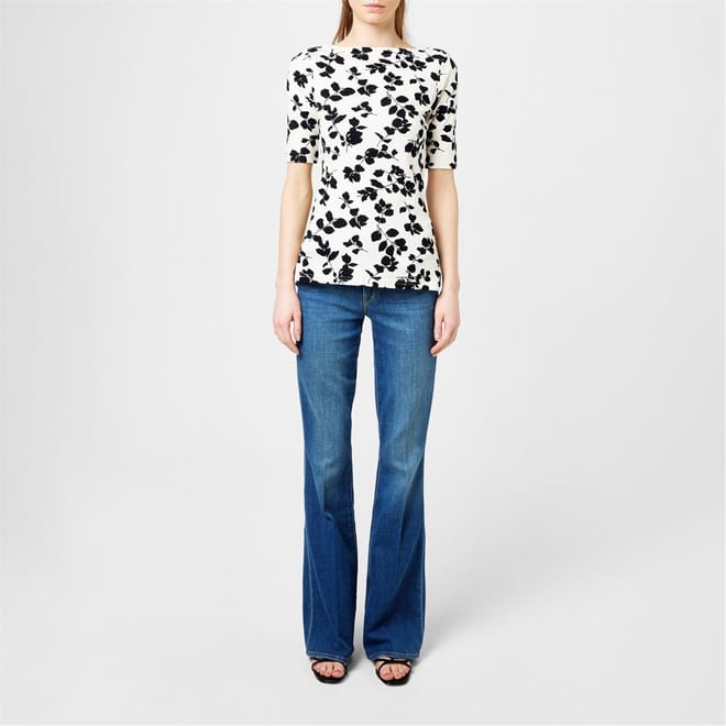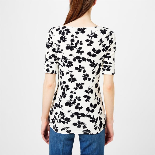 Indulge in the epitome of accessible luxury with the Lauren by Ralph Lauren Judy T-Shirt. Embodying the brand's rich heritage and commitment to impeccable craftsmanship, this top effortlessly blends style and comfort. The boatneck and slim fit silhouette exude sophistication, while the half-length sleeves with fold-over cuffs add a touch of refinement. The embroidered monogram logo at the hem reflects the brand's attention to detail and adds a subtle yet elegant touch. Versatile and timeless, this women's essential can be used as a base layer or paired with denim for a chic and effortless look. Crafted with a seamless stitch, this lightweight top offers a soft and breathable experience, making it perfect for any season, occasion, or collaboration with your personal style. 94% cotton 6% elastane. Machine washable, follow care instructions. -