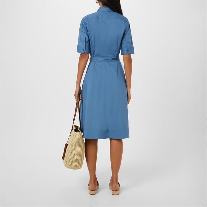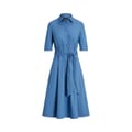 Step into summer in style in this stunning Wakana Linen Shirt dress from Lauren by Ralph Lauren. Expertly made using 100% linen for a luxuriously lightweight appeal that keeps you comfortable with its breathable appeal and soft touch, its silhouette effortlessly elevating your everyday ensemble. Cut to a fit and flare shape this dress adheres to the contours of your frame for a flattering appeal, falling to a knee length this look boasts short sleeves for comfort. Personalise the look with the tie fastening, whilst the shirt collar and button down fastening make for a suave appeal. Designed in a denim inspired indigo blue colourway this dress boasts a feminine, utilitarian edge that exudes modernity.