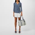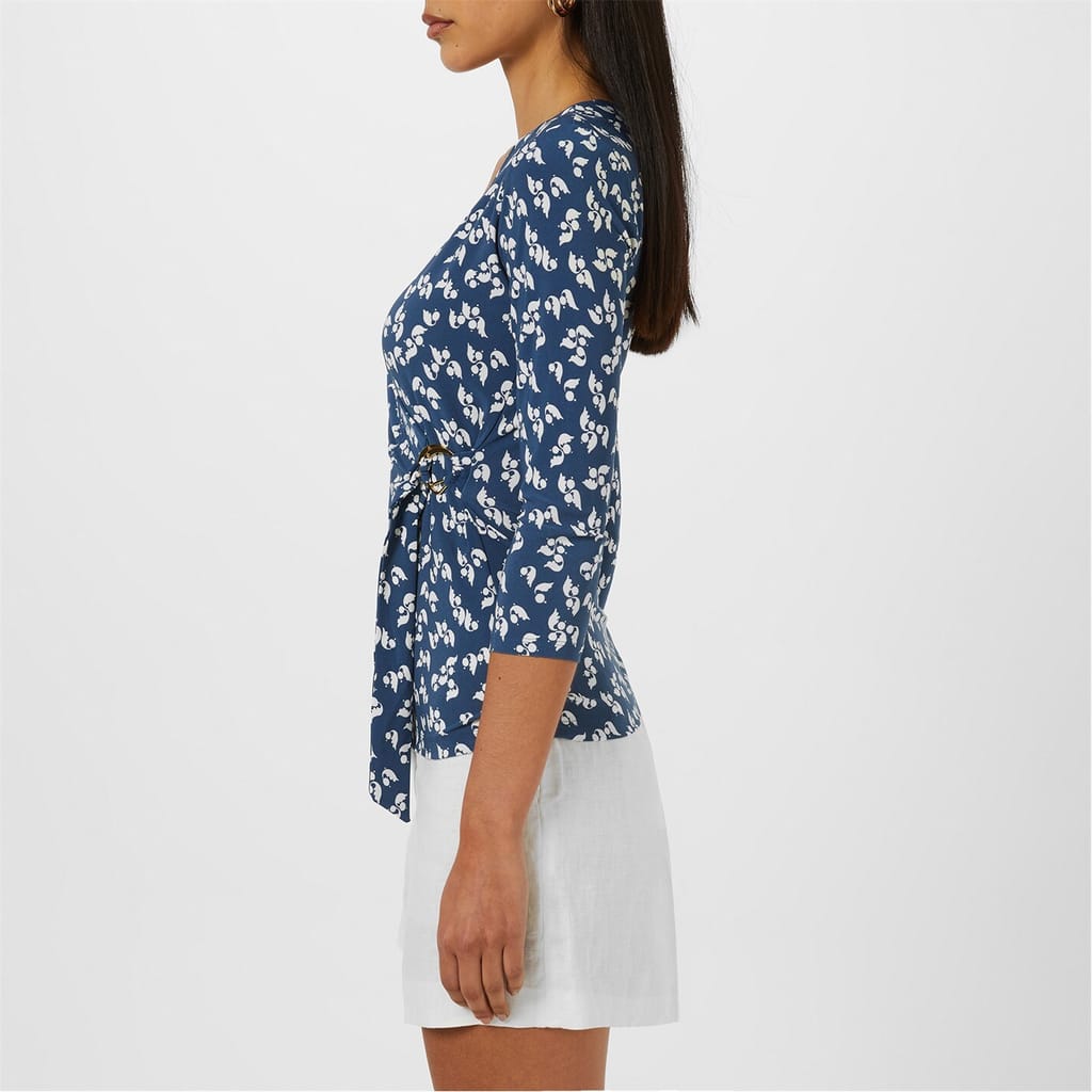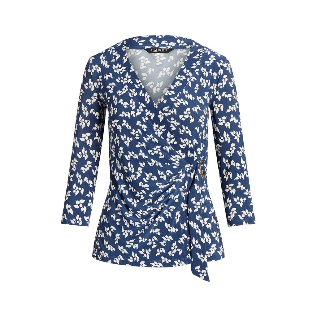 - Designed in a blue and cream colour palette with an all-over pattern adding a visual appeal. Whether you are having a day at the office or an evening out, the Lauren by Ralph Lauren Jainab Wrap Top is the perfect piece to elevate your wardrobe. Pair with cream jeans for a summer appeal or with a black satin skirt for a sophisticated look.