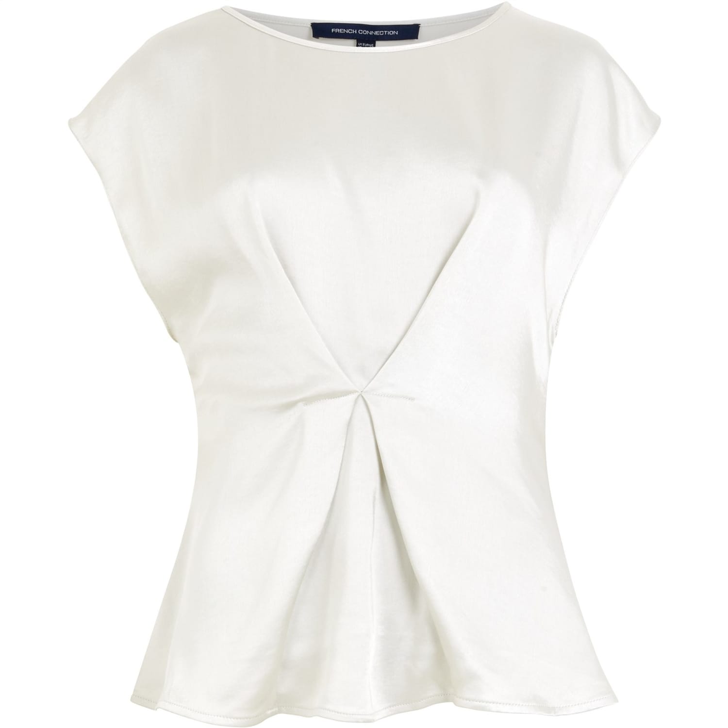 This French Connection blouse features a relaxed fit with short sleeves and a boat neck. The solid pattern and pleat embellishments add a subtle touch of elegance, making it a versatile addition to your wardrobe. -