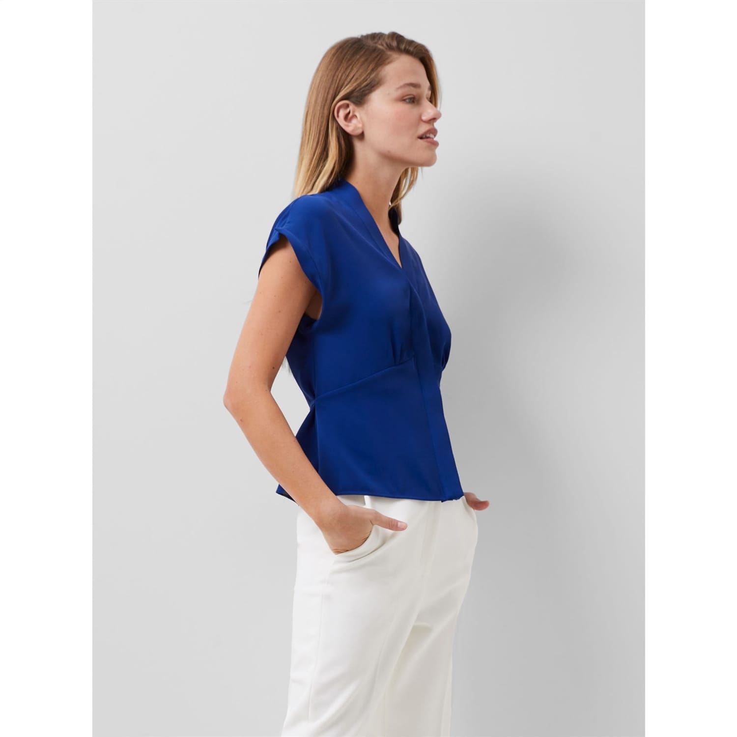Elevate your wardrobe with this French Connection blouse. Featuring a flattering V-neck and stylish cap sleeves, this solid-coloured top offers a regular fit that's perfect for any occasion. -
