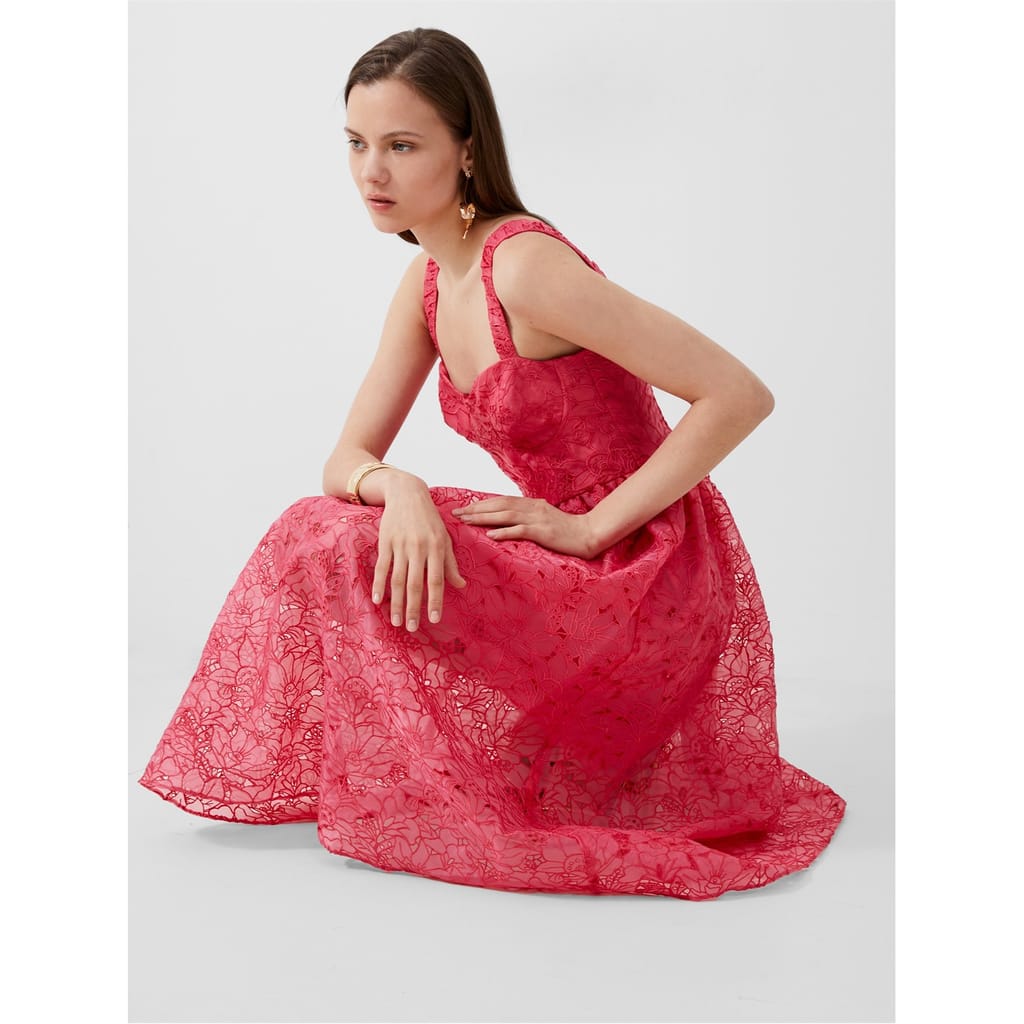 This French Connection midi dress features a stunning floral pattern and a flattering sweetheart neckline. Designed in an elegant A-line style with a regular fit, it offers a perfect blend of comfort and style for any occasion. -