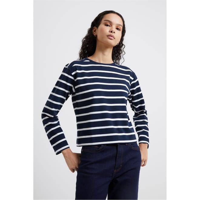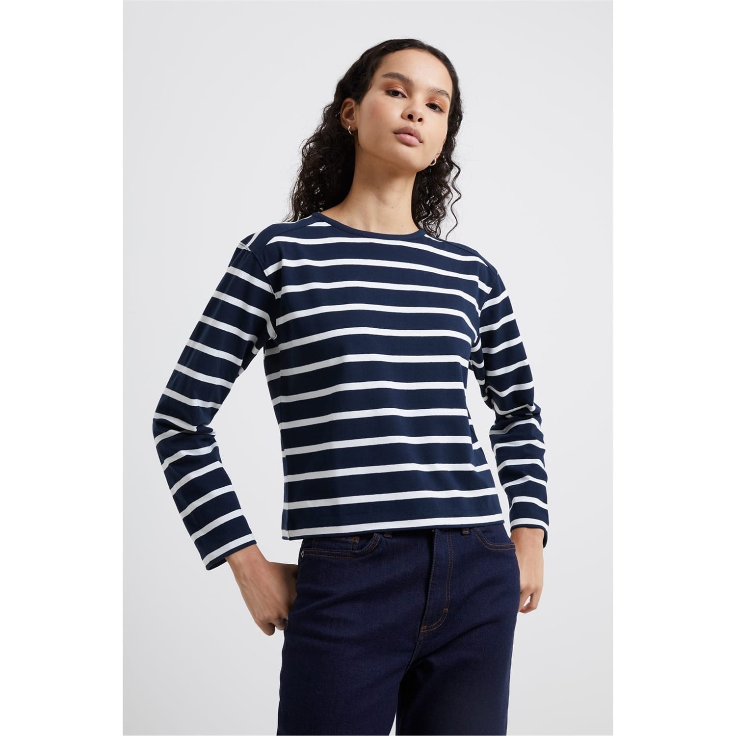 This French Connection top features a classic crew neck and a regular fit, offering a comfortable and stylish choice for any occasion. The horizontal stripe pattern adds a touch of modern flair, making it a versatile addition to your wardrobe. -