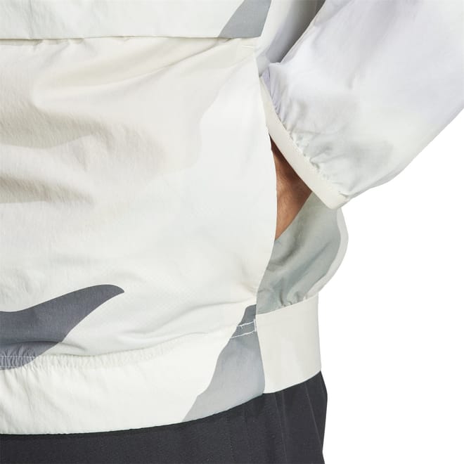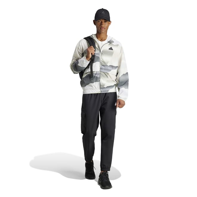 Urban escapes call for gear that keeps up. This full-zip adidas hoodie moves easily between adventures in the city and time spent lounging. The crinkly woven fabric and water-resistant finish shrug off unexpected weather so you stay dry on the go. Subtle graphics add understated style. When wanderlust strikes, simply zip up and escape into the cityscape.