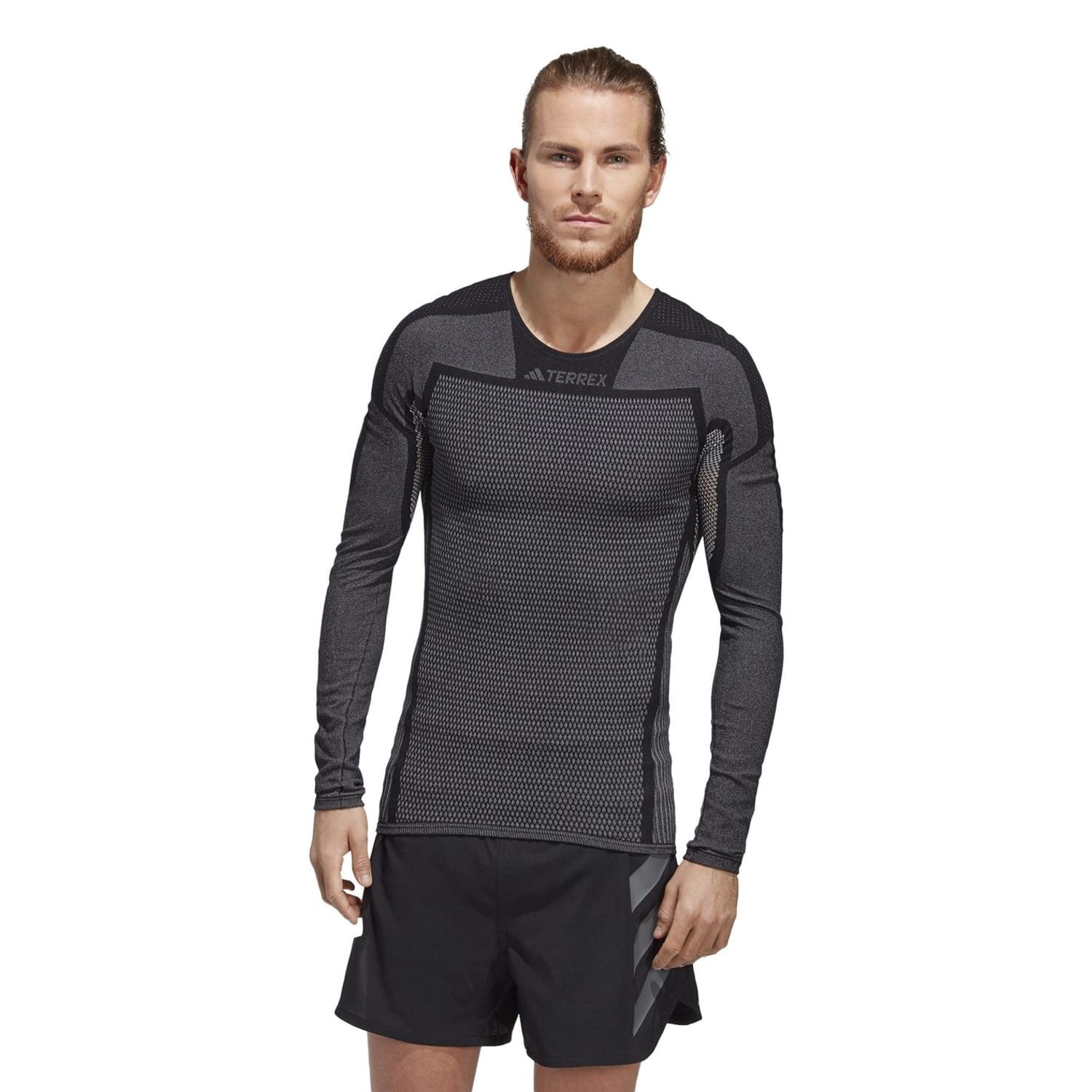 Refresh your active wear with the addition of the adidas Terrex Drynamo Long Sleeve Light Mens . adidas offers high-quality sports gear that aligns with their core values of innovation, sustainability and inclusivity. Meticulously crafted in a blend of polypropylene, this stylish and practical T Shirt comes in a compression fit combined with moisture-wicking technology ensures you stay dry and fresh whatever your doing. Showcasing a comfortable ribbed crew neck, cuffs and hem offering a comfortable and secure fit during high-performance activities. The lightweight, breathable fabric made from Dryarn™ along with seamless construction, sophisticated ventilation zones, and breathability makes it comfortable and allows freedom of movement, ensuring you reach your full potential during your sessions. Finished in a stylish black and white colouring and complete with the iconic adidas and Terrex branding to the front and rear signs off with a sporty aesthetic. The intricate patterned design a -