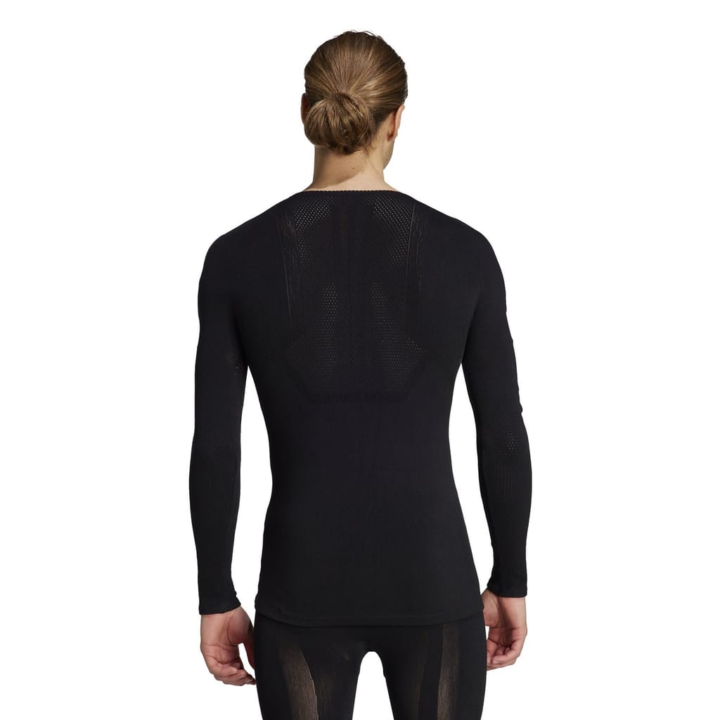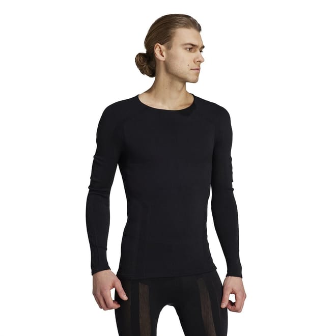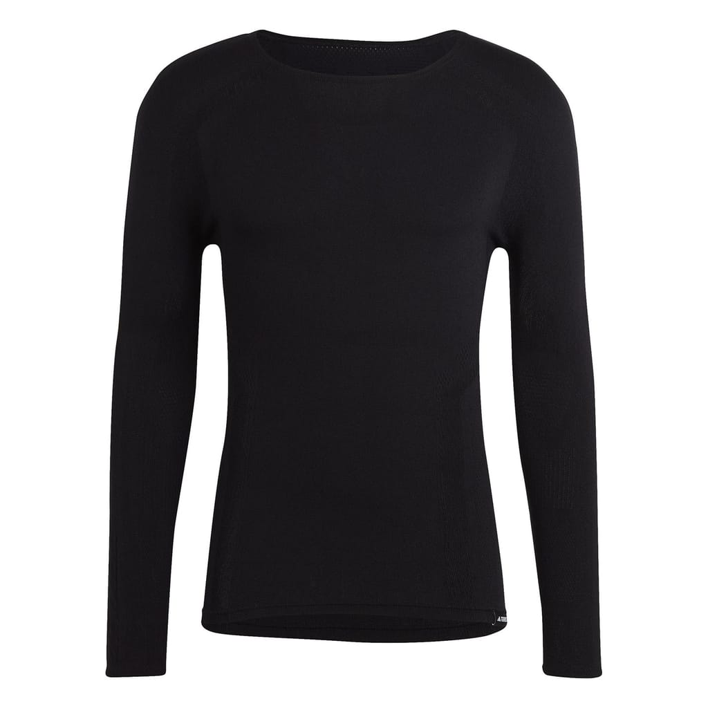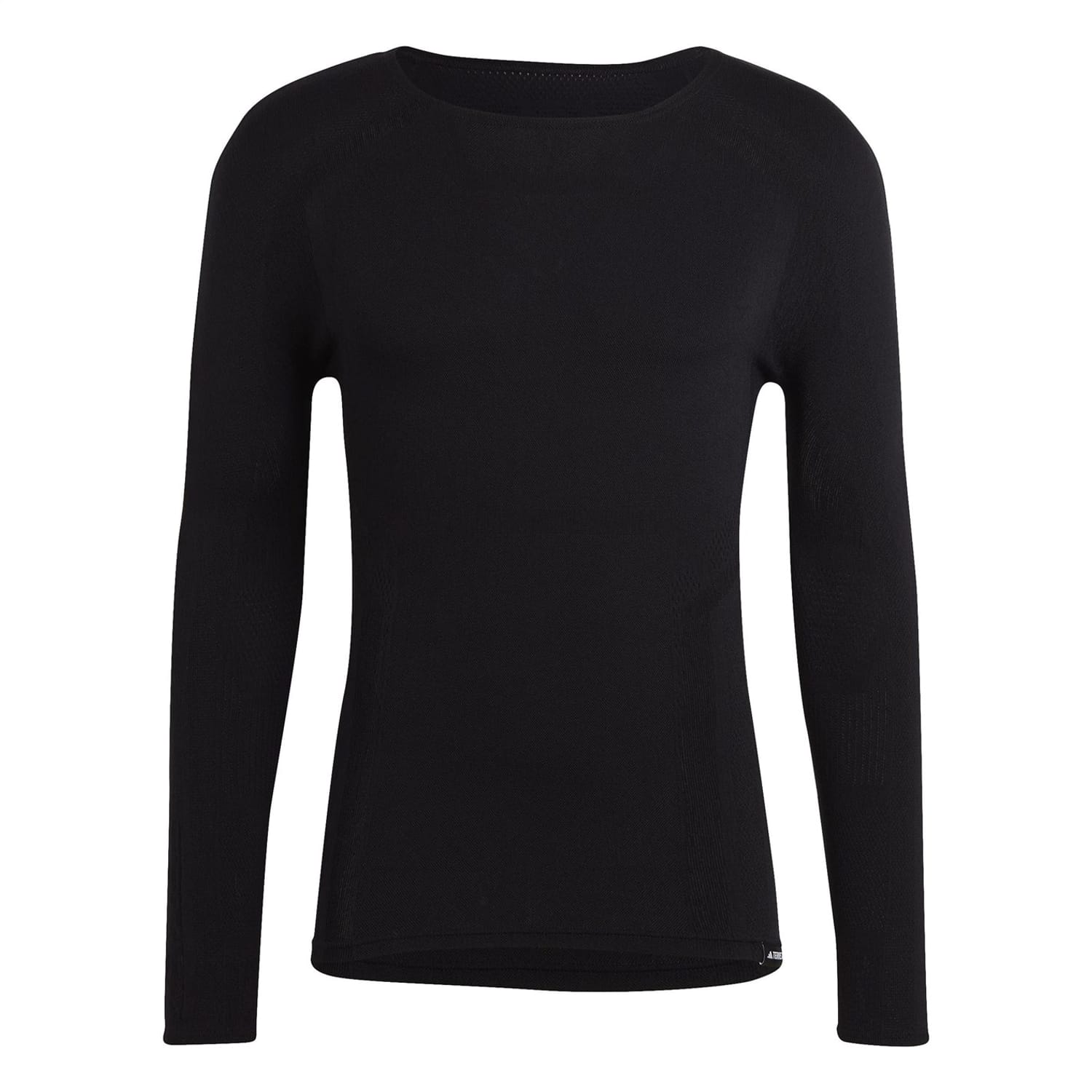 This adidas Terrex merino t-shirt is designed for performance. Featuring a crew neck and long sleeves, it offers a slim fit for a sleek look. The solid pattern and subtle logo embellishment make it perfect for casual wear. -